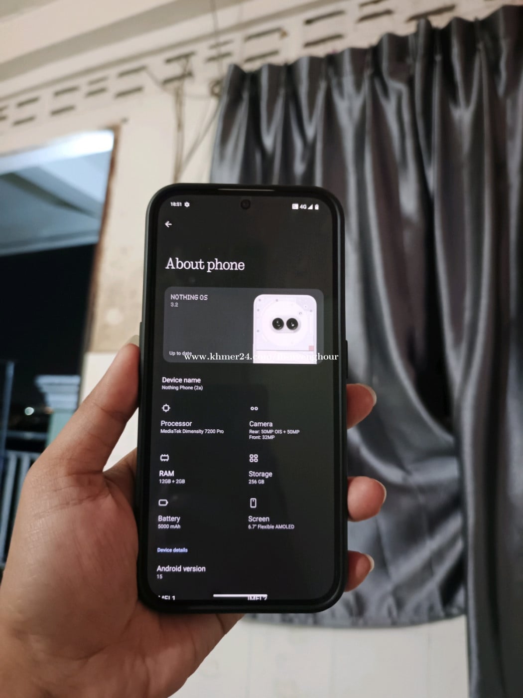 Nothing Phone (2a) AMOLED, 1B colors, 120Hz, 2160Hz PWM, HDR10+, 700 nits (typ), 1100 nits (HBM), 1300 nits (peak) Size 6.7 inches, 108.0 cm2 (~87.6% screen-to-body ratio) Resolution 1080 x 2412 pixels, 20:9 ratio (~394 ppi density) Protection Corning Gorilla Glass 5 New 99% មកជាមួយ case មួយ 189$ telegram t.me/Venghour_Nhan