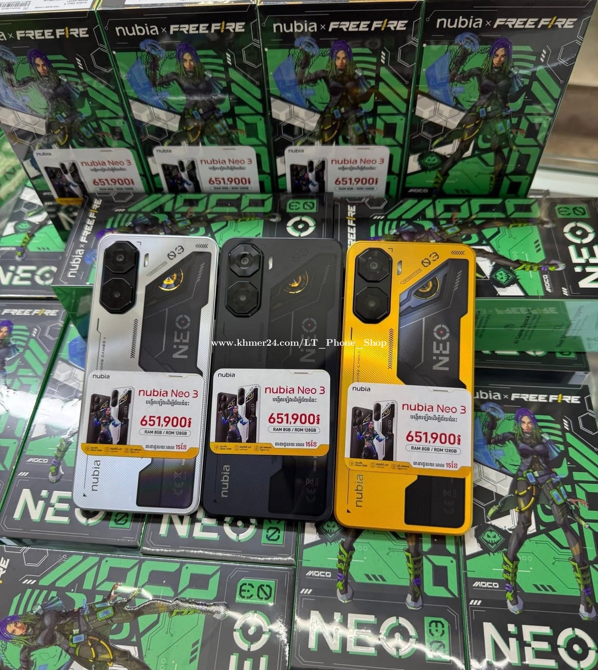 Nubia Neo 3 (8GB+8GB/128GB) ថ្មីធានា15ខែ, មាន3ពណ៍៖ ខ្មៅ, ទឹកប្រាក់, និងលឿង, តំលៃពេញ 159$ បញ្ចុះតំលៃនៅសល់ត្រឹមតែ 142$ និងមានបន្ថែមជូននូវស្រ្គីនការពារ និងសំបកការពារ។ ✔️ 50MP Main Camera ✔️ 16MP Selfie Camera ✔️ Unisoc T8300 ✔️ 6.8” AMOLED 120Hz ✔️ 6000mAh (33W) ✔️ Gaming Triggers ✔️ RGB Backlight Effects 🏡 ហាងលក់ទូរស័ព្ទដៃទំនើប អិលធី 📲 ទំនាក់ទំនងលេខទូរស័ព្ទ: 016711xxxClick To Call (Telegram) / 099333xxxClick To Call / 0888884xxxClick To Call 📩 Telegram: https://t.me/LTPhoneShop 📬 Facebook Page: https://www.facebook.com/share/165XEwR2ZA/?mibextid=wwXIfr 🗺️ ផ្ទះលេខ139c, ផ្លូវលេខ143 កែងផ្លូវលេខ376, សង្កាត់បឹងកេងកង3, ខណ្ឌបឹងកេងកង, រាជធានីភ្នំពេញ 📍Google map: https://maps.app.goo.gl/phENGCSAT33SaM9r7?g_st=com.google.maps.preview.copy 🛵 មានសេវាដឹកជញ្ជូនគ្រប់ខេត្តក្រុងរាជធានី