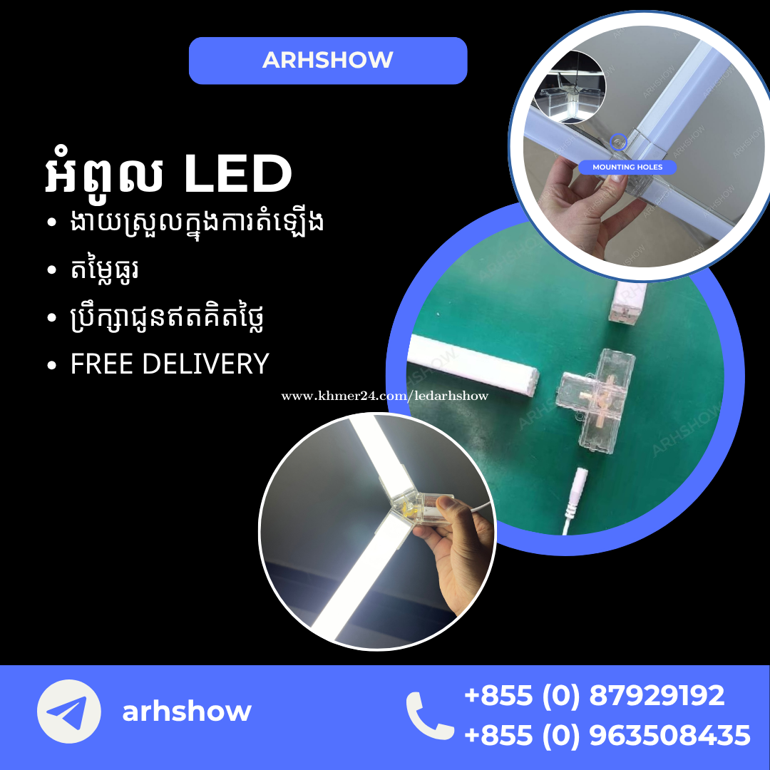 ទាក់ទងមកថ្ងៃនេះ ដើម្បីដឹងព័ត៌មានបន្ថែម ឬណាត់ជួបផ្ទាល់ដើម្បីប្រឹក្សាដោយឥតគិតថ្លៃ! 👉 087815xxxClick To Call 🛒 ទិញនៅលើ Khmer24: https://www.khmer24.com/arhshowcambodia 📍 ឆានែលតេឡេក្រាម: https://t.me/ARHShowCambodia 📧 ផ្ញើសារមកយើងឥឡូវនេះ https://t.me/arhshow អំពូលភ្លើងសម្រាប់ការិយាល័យ និងការរចនាផ្នែកខាងក្នុង ធ្វើឱ្យការិយាល័យលោកអ្នកភ្លឺច្បាស់ងាយស្រួលធ្វើការងារ ហើយថែមទាំងមានភាពស្រស់ស្អាតជាមួយអំពូលភ្លើងដែលោកអ្នកអាចច្នៃម៉ូតដោយខ្លួនឯងបាន។ ថែមទាំងមានការ #ធានារយៈពេល២ឆ្នាំ និងដំឡើងជូនដោយឥតគិតថ្លៃ! ℹ️ ព័ត៌មានអំពីគ្រឿងបំភ្លឺ: • Diodes: EPISTAR • ការពារទឹកនិងធូលី: IP54 • វ៉ុលចូល: AC100-285 V (អាចប្រើភ្លើង 220V ដោយមិនចាំបាច់ប្រើអាំងវ៉ូទើ ហើយភ្លឺច្បាស់ទោះបីជាភ្លើងខ្សោយក៏ដោយ) • សមត្ថភាពបំភ្លឺ: 110-115 L/W (ភ្លឺច្បាស់បំផុត) • ពណ៌ពន្លឺ (CRI): 95 (ការបង្ហាញពណ៌ល្អបំផុត) • សីតុណ្ហភាពពន្លឺ: 6000K (ជាគំរូដើម ក៏មាន 3000K និង 4000K ផងដែរ) រចនាម៉ូតអំពូលតម្រូវតាមចិត្តអ្នក តម្រូវតាមទំហំបន្ទប់និងការិយាល័យរបស់អ្នក! 超亮LED灯!!! 洗车灯 车库灯 蜂窝灯 美容院灯 沙龙灯 现在潮流的 LED 灯,让您的商业空间更酷更亮、更美更有吸引力。 ◾️质保 2 年 ◾️有很多款式,多种价位选择 ◾️三种不同的光色 ◾️免费为您设计!🤩 图上的价格是4个440mm的PC的灯管(6500K) +4个拼接件+ 电线 #ARHShow #ARHShowCambodia #modulelighting #lightingcambodia #officelighting #OfficeDecor #Officeart #lamp #officeluminiare #officeenhancement #arhshowlighting #arhshowmodule #ជំនាញភ្លើងការិយាល័យ #ភ្លើងការិយាល័យ #ឯកទេសអំពូលភ្លើង #ledlamp #ledmodule #ledmodulelighting #led #ledlight #officelight #style LED #LED #lamp