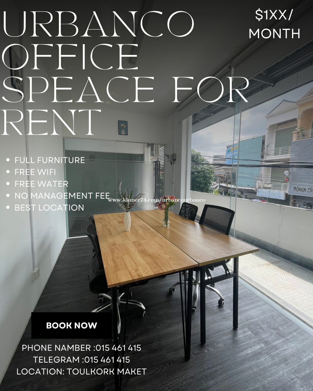 សួស្តីអតិថិជនទាំងអស់គ្នា ខាងយើងខ្ញុំមានជាបន្ទប់ការិយាល័យជួល 😊 📌នៅក្រោយផ្សារទួលគោក ➡️ តំលៃចាប់ពី 199$ ➡️ ទំហំចាប់ពី 10m2ដល់15m2 📌ការផ្តល់ជូនសម្រាប់អតិថិជនមាន: ➡️ កាមេរ៉ាសុវត្ថិភាព 24/7 ➡️ មិនគិតលើថ្លៃគ្រប់គ្រង ➡️ មានម៉ាសុីនត្រជាក់ តុ កៅអីគ្រប់គ្រាន់ ➡️ ប្រពន្ធ័អគ្គីភ័យ ➡️ មិនគិតថ្លៃសេវាថែទាំ ➡️ តម្លៃភ្លើង 0.30$/Kwh ➡️ មិនគិតថ្លៃទឹក ➡️ មិនគិតថ្លៃទៅលើWifi ➡️សុវត្ថិភាពសន្តិសុខ 24/7 📍ទីតាំងដែលងាយស្រួលបំផុតក្នុងការធ្វើដំណើរ ➡️ពីកន្លែងធ្វើការទៅដល់Fun Mall (2min) ➡️ពីកន្លែងធ្វើការទៅដល់TK Avenue Mall (4min) ➡️ពីកន្លែងធ្វើការទៅដល់បឹងកកក់ (9min) ➡️ពីកន្លែងធ្វើការទៅដល់AEON Mall SenSok (12min) Hello all customers, we have office space.😊 📌 Located at Toulkork market ➡️ Price 199$ ➡️ 10m2 -15m2 📌For my company provide to customer ➡️ Security 24/7 ➡️ Air-conditioner and furniture ➡️ No management fee ➡️ Fire system ➡️ Electricity 0.30$/Kwh ➡️ Free water use ➡️ Free wifi ➡️Security 24/7 📍Location easy for customers ➡️From office to Fun Mall (2min) ➡️From office to TK Avenue Mall (4min) ➡️From office to Beoungkork (9min) ➡️From office to AEON Mall SenSok (12min) 📌For more information please contact 015461xxxClick To Call / 016514xxxClick To Call(Telegram)