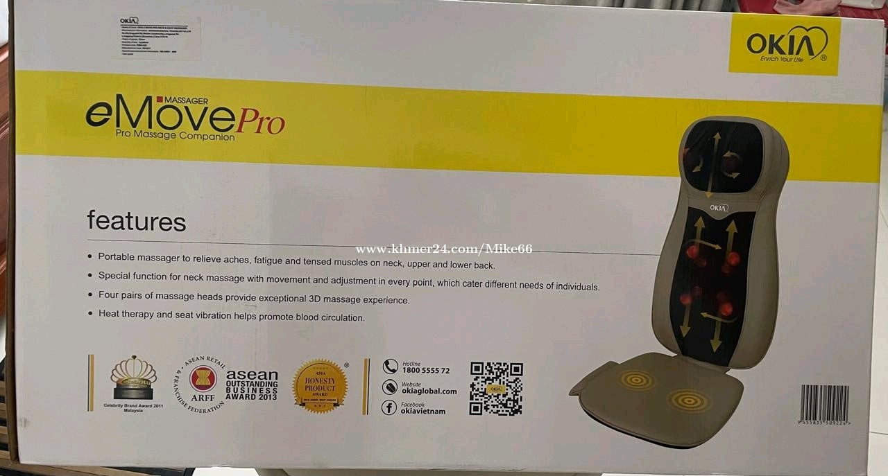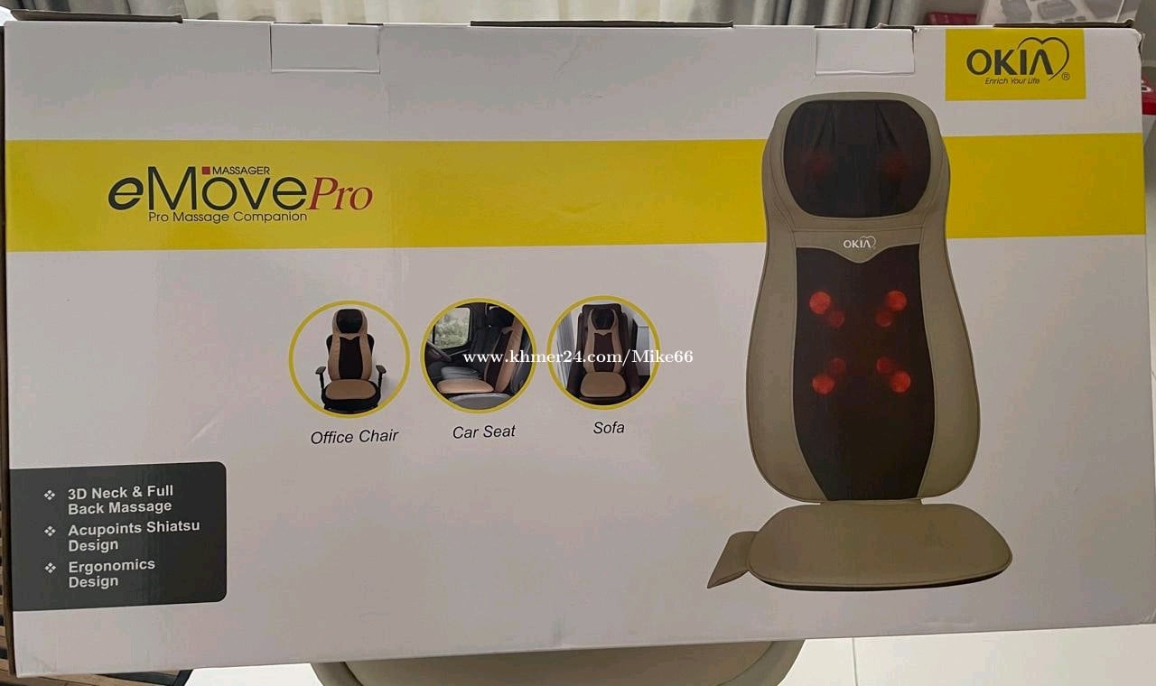 Okia eMove Pro Massage Cushion Excellent condition, fully working. Provides shiatsu back massage, heat function, and multiple intensity settings. Comes with remote and power adapter. Perfect for home or office relaxation.