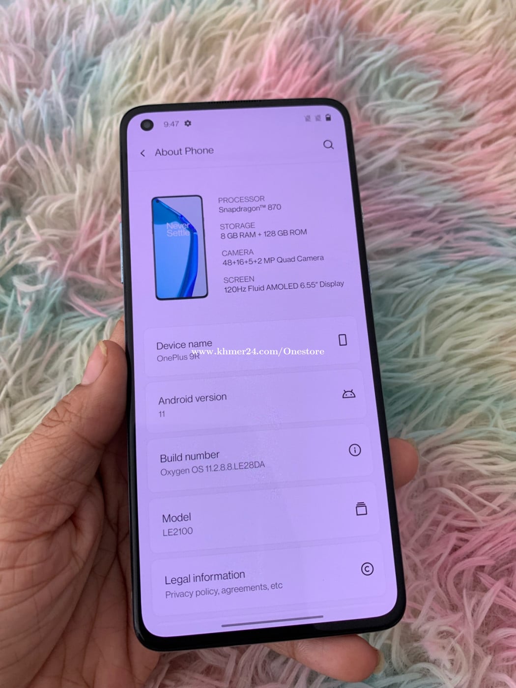 One plus 9R. Ram8/128GB. Snapdragon 870.5G ថ្ម4500mah តម្លៃ130$. 📍ទីតាំង: លើផ្លូវ 105K, ភូមិក្បាលដំរី២, សង្កាត់កាកាប ២, ខ័ណ្ឌពោធិ៍សែនជ័យ, ភ្នំពេញ (ទល់មុខសួនដើមពោធិ៍) 🗺️Google Map: https://share.google/qjPAUPpl0Fg7mjUoc 📲លេខទូរស័ព្ទ: 098882xxxClick To Call/017882xxxClick To Call/068882xxxClick To Call តេលេក្រាម010601xxxClick To Call