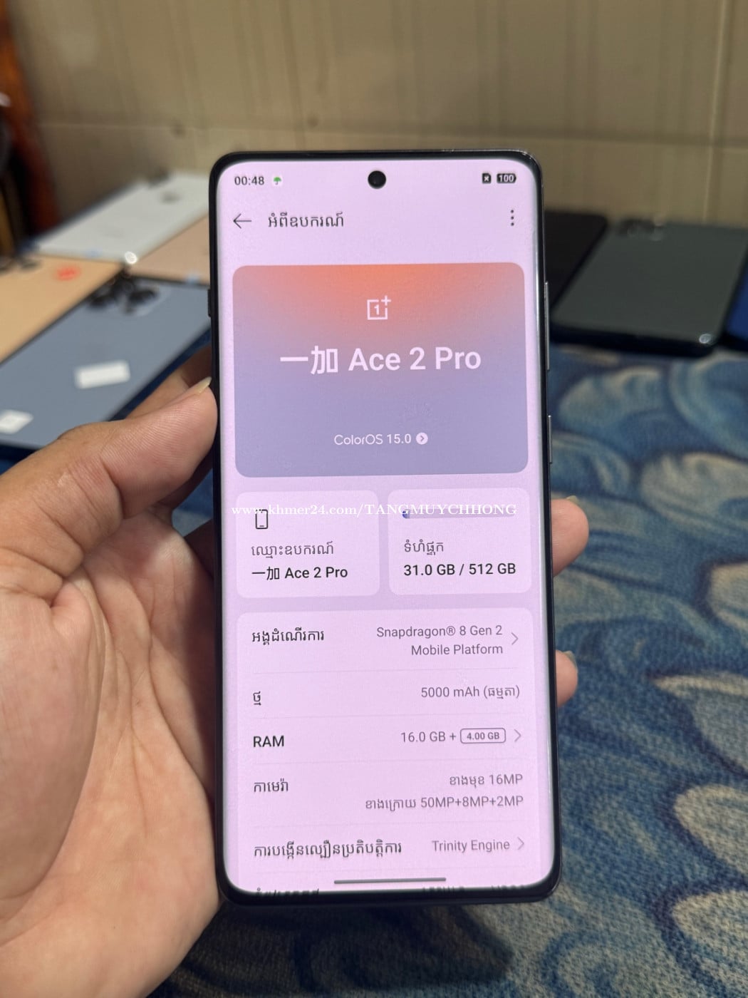 One plus Ace 2 Pro Ram16/512G សំណុំសុីន បែកខ្នងដូចរូប 200$