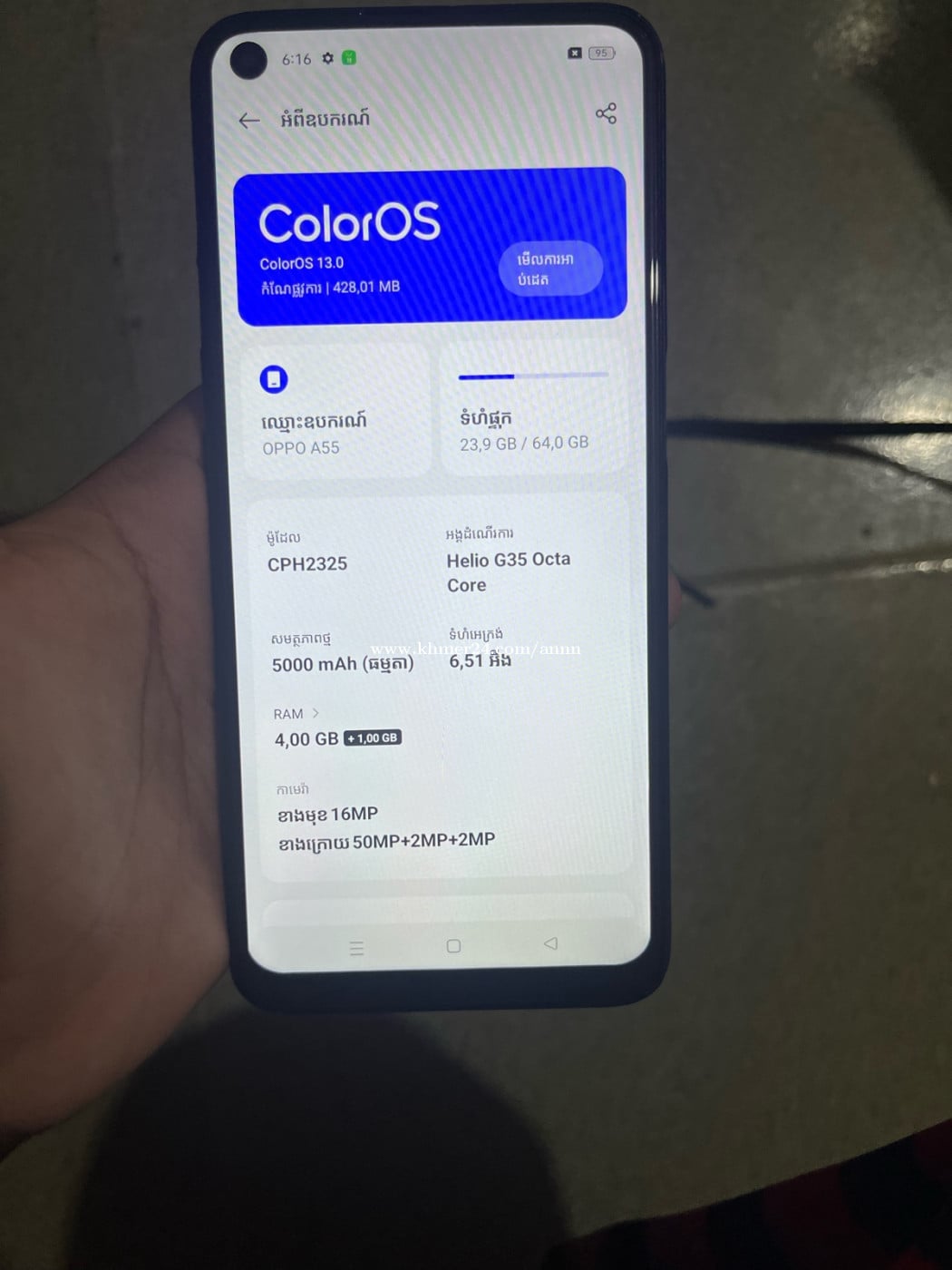 Oppo a55 ram4/64G នៅស្អាត លក់60$ ទីតាំងបឹងត្របែក