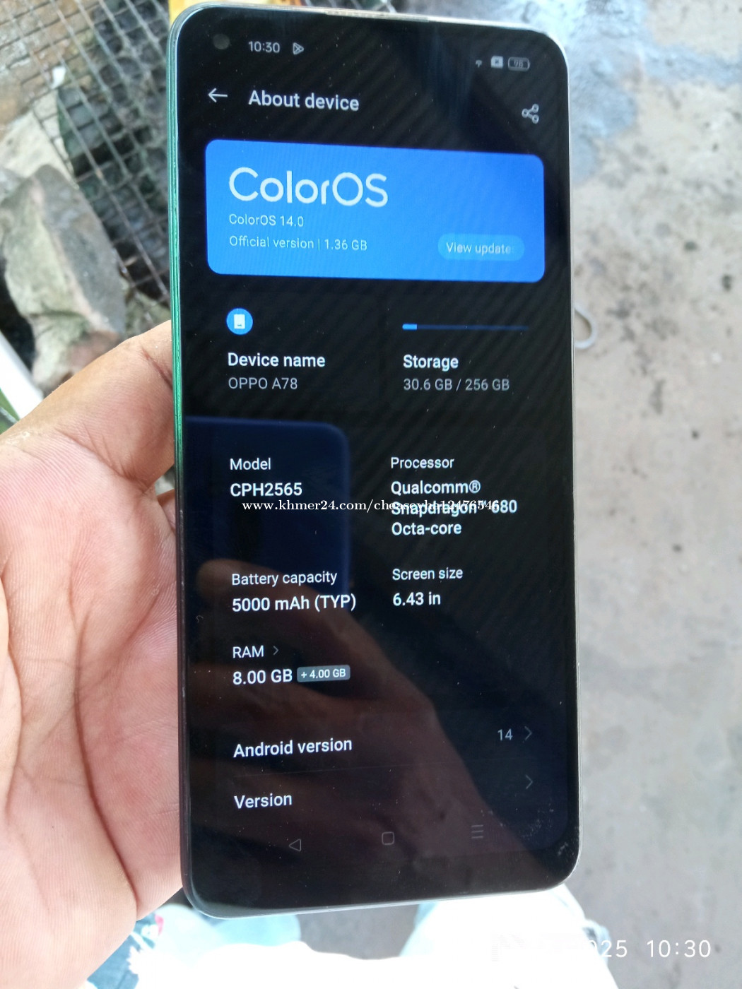 Oppo A78 lcd ថ្មី ram8+4/256g 55$ ក្រុងសៀមរាប ស្ទើរកាម៉េរ៉ាក្រោយតិចនិងសម្លេង 060208xxxClick To Call សៀមរាប