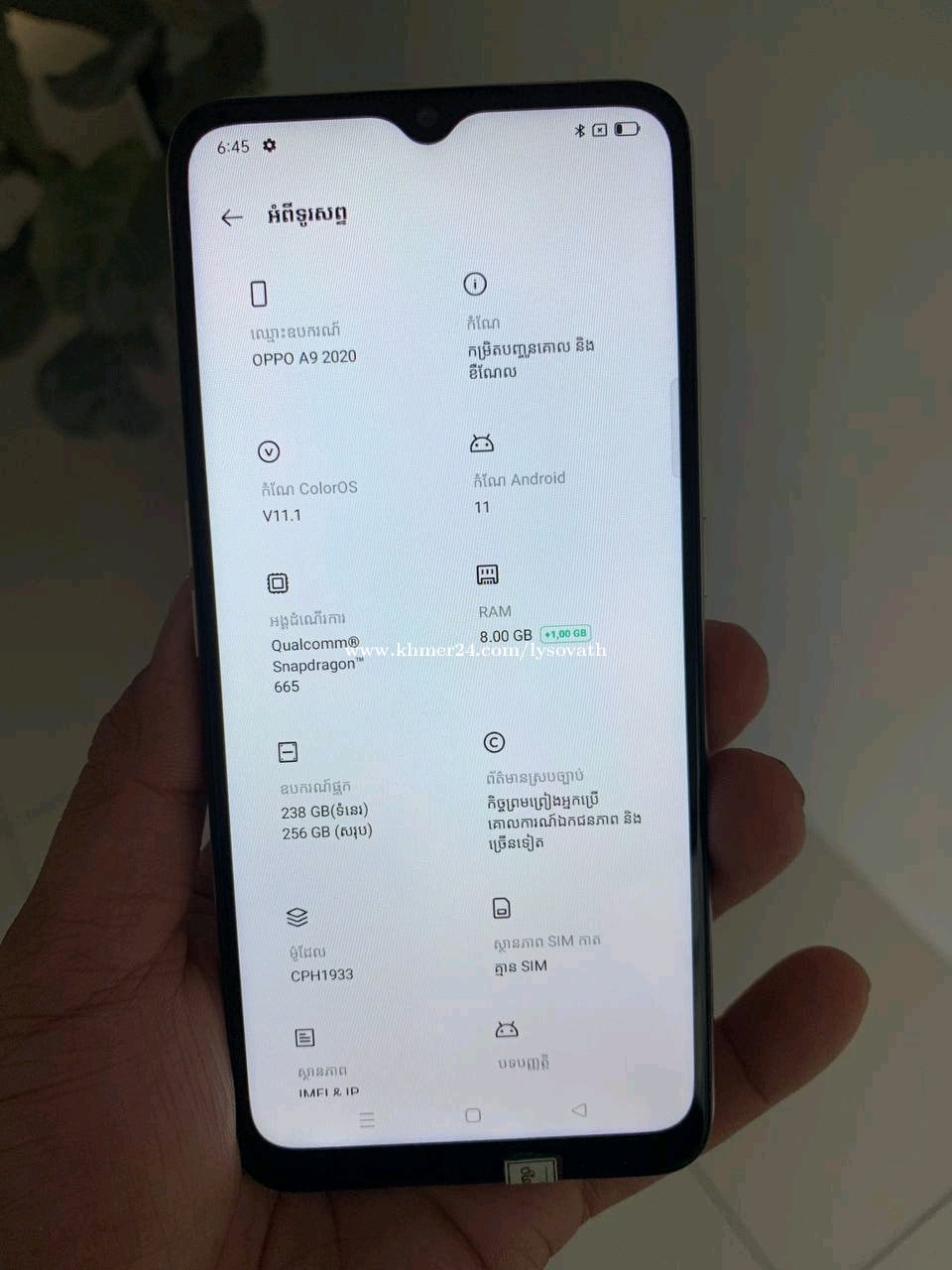 Oppo A9 Ram 8/256 សំណុំសុីន ស្អាត ថ្មកាន់ សេវាខ្លាំង ដើស្មូតណាស់ លក់ 55$ ទីតាំងភ្នំពេញជិតស្តុបផ្សារដីហ៊ុយ 📲ទាក់ទង 010465xxxClick To Call 📥តេលេក្រាម : https://t.me/Gennii168