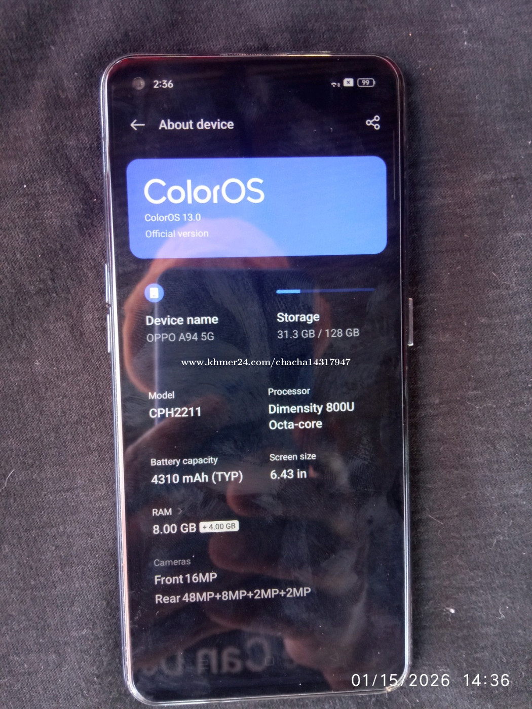 Oppo a94 5g ថ្មនៅកាន់ កាម៉េរាច្បាស់ ដូចរូប(សៀមរាប) 060208xxxClick To Call telegram