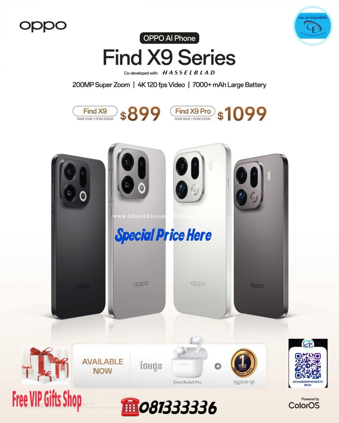 OPPO Find X9 & OPPO Find X9 Pro មកដល់ហើយ 🌟 ផ្តល់ជូនប្រូម៉ូសិនពិសេសៗជូនបងៗ✅ 🌟 OPPO Find X9 Ram12G/256GB 🌟 OPPO Find X9 Pro Ram16G/512GB 🔥ចុះតម្លៃពិសេសជូនប្រសិនបើមិនយកការដូថែមទេ🔥 📥 ដើម្បីសាកសួរតម្លៃពិសេស! សូមចូលកាន់Telegram Link: https://t.me/CE_PhoneShop តម្លៃល្អជូន✅ ☎️ 081333xxxClick To Call, 0762333xxxClick To Call, 017226xxxClick To Call, 067226xxxClick To Call ✅ Group Telegram: https://t.me/joinchat/LVrUvnFniQpkODBl 🗳 ចុចលីងនេះចូល Channel Telegram: https://t.me/ChaiEngPhoneStoreCE 📍អាស័យដ្ឋាន ផ្ទះលេខ68BE0 ផ្លូវ215 នេរុហ៍ សង្កាត់វាលវង់ ខណ្ឌ័7មករា រាជធានីភ្នំពេញ។ នៅខាងជើងផ្សារដេប៉ូប្រហែល 500ម៉ែត្រ 📍https://goo.gl/maps/KjDyGuoDN4dMjiah9 🚚🛵មានសេវាដឹកជញ្ជូនទាំងប្រទេស #ChaiEngPhoneShop #CE #ChaiEngPhoneStore2 #OPPOFindX9 #OPPOFindX9Pro
