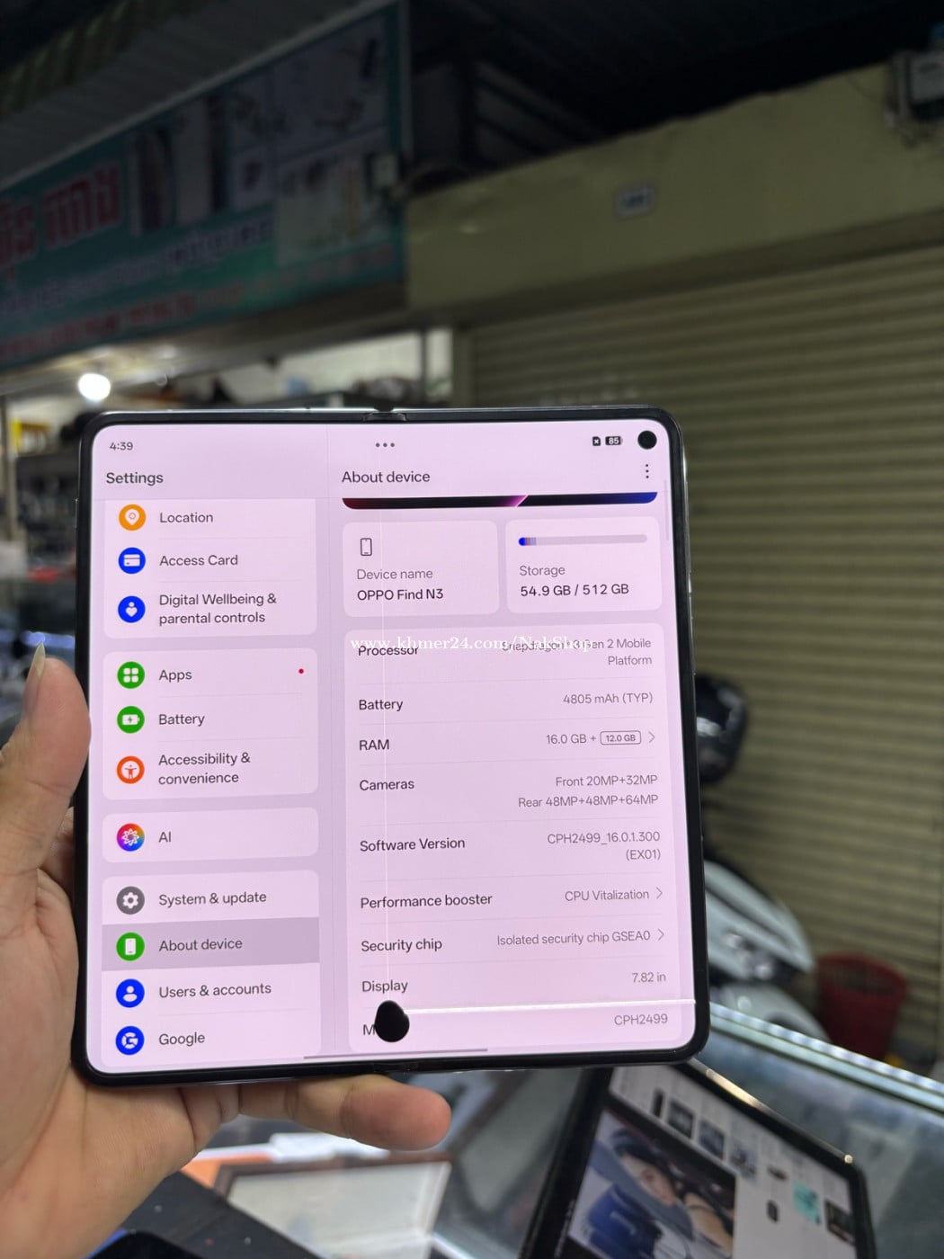 Oppo FindN3 512G Ram16G Sim2 Global ម៉ាសុីនសានុំ អេក្រង់ក្នុងជាំឆ្នូត