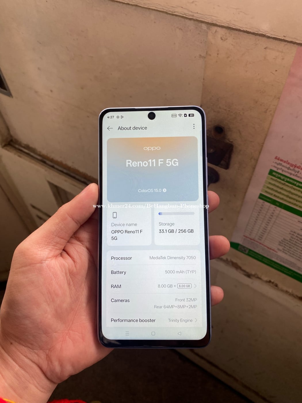 Oppo Reno 11F 5G ក្រុមហ៊ុន Ram 8G+8G / 256G អេក្រង់ដូរថ្មី ស្អាត99% ធានាម៉ាសុីនហ្សុីន នឹងធានាការប្រេីប្រាស់រយៈពេល15ថ្ងៃ មានឆ្នាំងសាក មានសេវាដឹកជញ្ជូន25ខេត្ត-ក្រុង ទីតាំង : ជិតស្តុបលូប្រាំ ស្ទឹងមានជ័យ Tel : 099777xxxClick To Call / 081336xxxClick To Call / 0972312xxxClick To Call