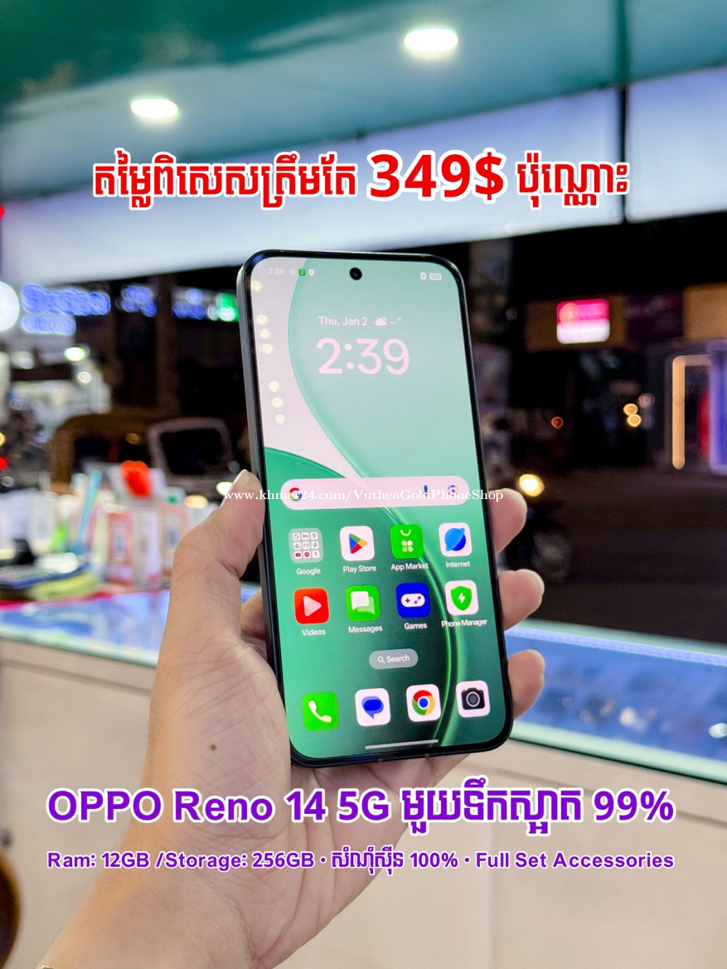សល់បាន 150$ ភ្លាមៗ ចំណេញណាស់បងប្អូនតម្លៃថ្មីកេះ 499$ ✔️ OPPO Reno 14 5G (Ram: 12GB / Storage: 256GB) មួយទឹកស្អាតសំណុំស៉ីន 99% គិតជូនបងប្អូនត្រឹម 349$ តែប៉ុណ្ណោះ 💬 Telegram Chat: https://t.me/vutheagold