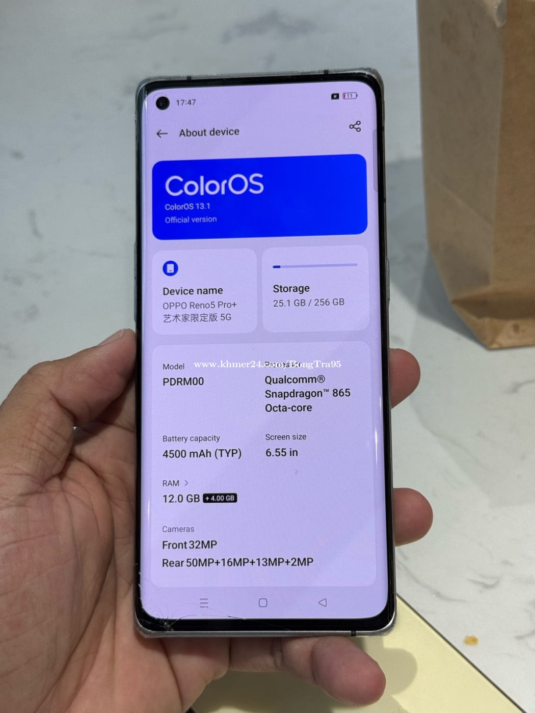 Oppo Reno 5Pro plus Artist 5G បែកមុខតិច ទូរស័ពសាណុំមិនទាន់ដោះ Ram12G/Memory256G Snapdragon 865(5G) តម្លៃ115$ដាច់ (ធានាជូន1អាទិត្យ) 010767xxxClick To Call/ចោមចៅ ភ្នំពេញ