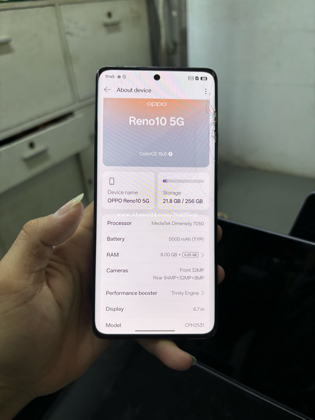 Oppo Reno10 5G 256G Ram8G Sim2 បែកថាច់ អត់ដើរប៊ូតុង