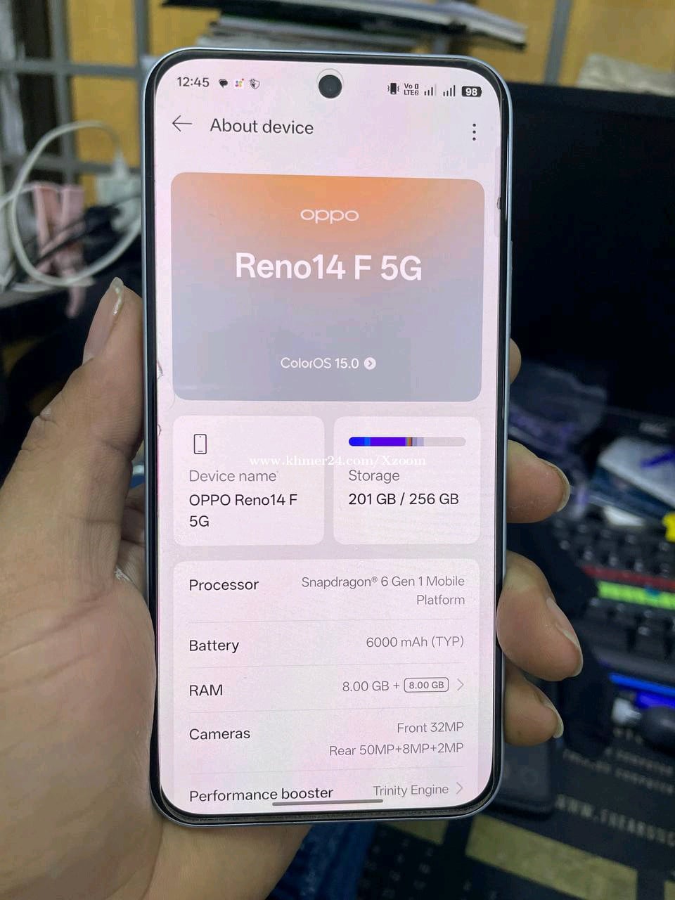 OPPO Reno14F 5G (8G+256G) sim2ក្រុមហ៊ុន225$ សុំណុំសុិន ភ្នំពេញ