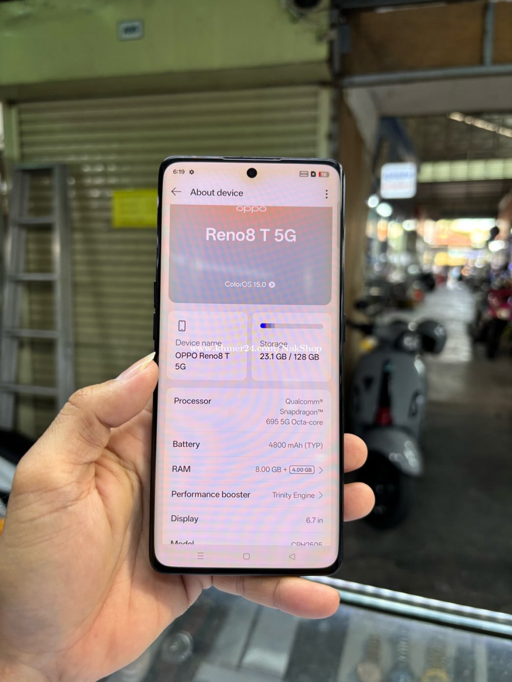 Oppo Reno8T 128G Ram8G Sim2 Global សានុំស្រុីន អេក្រង់ឡើងលឿងគៀន