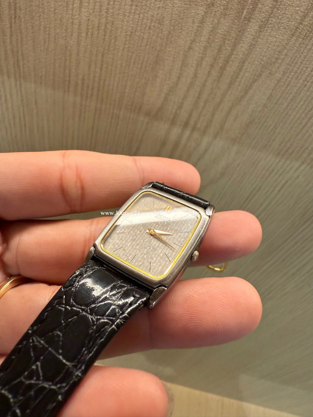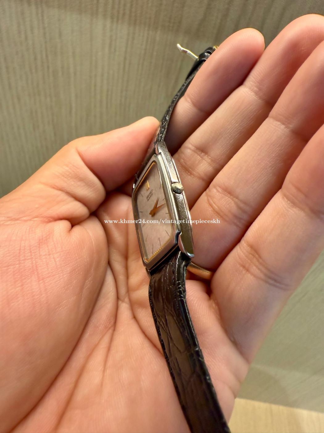 🔥នាឡិកាឆ្នាំ 1996 ផ្ទៃពណ៌ប្រផេះ នាឡិកា Original Rarest Vintage SEIKO Tank Quartz Two Tone Gray Dial ដែលជានាឡិកាផ្ទៃពណ៌ប្រផេះ លាយមាស ជំនាន់ 1996 ម៉ាស៊ីនដំណើរដោយថ្ម។ នៅសំនុំដើម ស្អាតស្រាប់ មិនបាច់សម្អាតបន្ថែមទេ។ នៅក្រៅស្អាតណាស់ បងប្អូន។ 💥តម្លៃ Price: 160$ Contact me for more information. Telegram: 078639xxxClick To Call Check out more content Facebook: https://www.facebook.com/profile.php?id=61572795407489 Instagram: https://www.instagram.com/vintage_timepieces_kh?igsh=MWtmb21nbGVoMDRvNg== Khmer24: https://www.khmer24.com/vintagetimepieceskh Tiktok: https://www.tiktok.com/@vintage.timepiecekh168?_t=ZS-8vlo6DXZ7sA&_r=1 ⌚ For Sale: Original Rarest Vintage SEIKO Tank Quartz Two Tone Gray Dial JDM 5P31, dial 25.5x34mm, Pre-owned. Machine working well. 📌 Model: Original Rarest Vintage SEIKO Tank Quartz Two Tone Gray Dial 🔘 Band Material: Leather Strap 🔘 Case Size: 25.5x34mm 🔘 Year Manufactured: Est March 1996 🔘 Condition: Excellent vintage condition with minor signs of wear consistent with age. The watch has been well-maintained and is fully functional. The crystal is clear, and the band shows minimal wear. *ធានាលើម៉ាសុីន 1ខែ ប្រសិនមានបញ្ហាធ្វើជូនឥតគិតថ្លៃ។