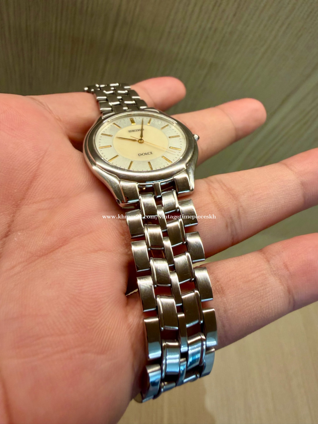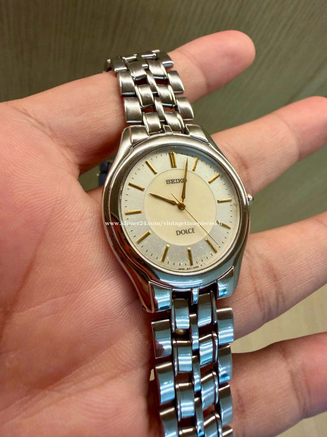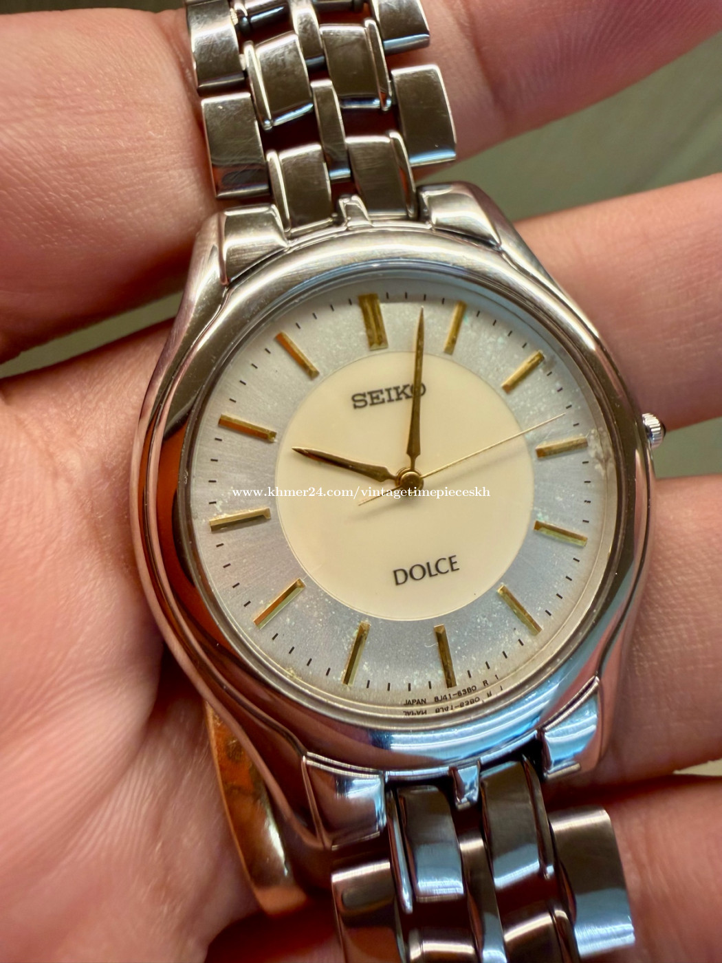 🔥 នាឡិកាត្រកូល DOLCE ផ្ទៃគុជខ្យង នាឡិកា Original Rarest Vintage SEIKO DOLCE Mother of Pearl Dial JDM ដែលជានាឡិកាផ្ទៃគុជខ្យង ជំនាន់ 1992 ដោយប្រើប្រព័ន្ធម៉ាសុីនថ្ម Quartz Caliber 8J41 ដែលមានភាពត្រឹមត្រូវខ្ពស់។ ចំនុចពិសេសនាឡិកាម៉ូដែល Seiko Dolce គឺជាស៊េរីនាឡិកាបុរាណដ៏លេចធ្លោមួយរបស់ក្រុមហ៊ុន Seiko ដែលបានចាប់ផ្តើមផលិតនៅ ឆ្នាំ 1980។ វាត្រូវបានរចនាឡើងសម្រាប់អ្នកស្រលាញ់នាឡិកាបែបសាមញ្ញ ប៉ុន្តែមានភាពឆើតឆាយភាពត្រឹមត្រូវខ្ពស់ និងរចនាបថស្តើងសម្រាប់សម្លៀកបំពាក់បែបផ្លូវការ។ នាឡិកានេះក៏ធ្លាប់ជាកាដូសម្រាប់កម្មវិធីពិសេសដែរ ដោយនៅបាតខាងក្រោមនាឡិកាមានឆ្លាក់អក្សរជប៉ុន សម្រាក់ន័យជូនពរទៅបុគ្គលណាម្នាក់។ នៅសំនុំដើម ស្អាតស្រាប់ មិនបាច់សម្អាតបន្ថែមទេ។ នាឡិកានេះនៅក្រៅស្អាតណាស់បងប្អូន។ 💥តម្លៃ Price: តម្លៃ 245$ Contact me for more information. Telegram: 078639xxxClick To Call Check out more content: Facebook: https://www.facebook.com/profile.php?id=61572795407489 Instagram: https://www.instagram.com/vintage_timepieces_kh?igsh=MWtmb21nbGVoMDRvNg== Khmer24: https://www.khmer24.com/vintagetimepieceskh Tiktok: https://www.tiktok.com/@vintage.timepiecekh168?_t=ZS-8vlo6DXZ7sA&_r=1 ⌚ For Sale: Original Rarest Vintage SEIKO DOLCE Mother of Pearl Dial Quartz JDM 8J41, dial 37mm, Pre-owned. Machine working well. 📌 Model: Original Rarest Vintage SEIKO DOLCE Mother of Pearl Dial Quartz JDM 🔘 Band Material: Stainless Steel 🔘 Case Size: 37 mm 🔘 Year Manufactured: Est 1992 🔘 Condition: Excellent vintage condition with minor signs of wear consistent with age. The watch has been well-maintained and is fully functional. The crystal is clear, and the band shows minimal wear. *ធានាលើម៉ាសុីន 1ខែ ប្រសិនមានបញ្ហាធ្វើជូនឥតគិតថ្លៃ។