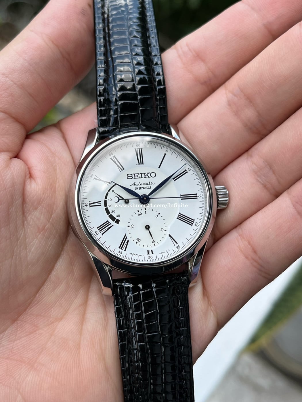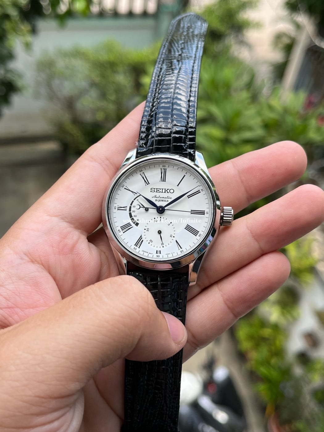 Just another special piece ๐ Seiko Presage Enamel Dial + Power Indicator ๐ฅ Condition: Pre-owned but still look very good(only has few hairlines), watch only(no box) Size: 40mm Movement: 6R27 Automatic Price: $6xx Warranty: 1 year on movement/ infinite warranty on authenticity FB page: Infinite Timepiece ๐ Catalogue: https://t.me/+m18HSNqV2NlhOTFl โ๏ธ Contact: 0966850xxxClick To Call/ 093881xxxClick To Call(telegram/whatsapp)