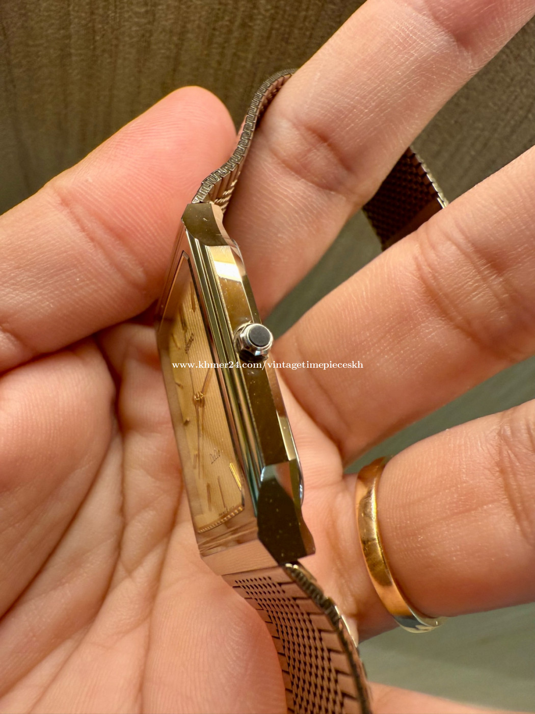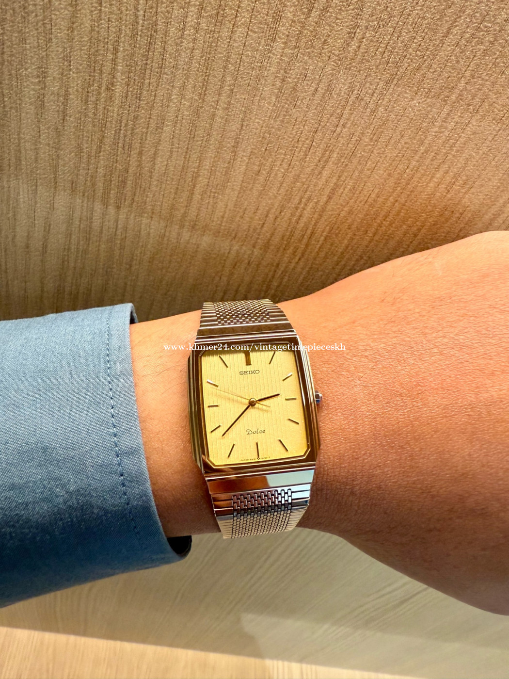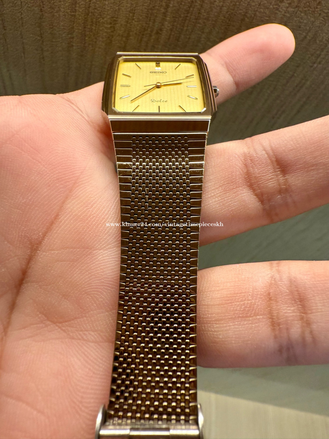 🔥នាឡិកាជ្រុងត្រកូល Dolce តួTungsten Carbide ឆ្នាំ 1991 នាឡិកា Original Super Rare Vintage SEIKO Dolce Tank Tungsten Carbide Linen Gold Dial ដែលជានាឡិកាផ្ទៃពណ៌មាស ក្រលាឆ្នូតត្រង់ ហើយមានគ្រាប់តូចៗពន្លឺភ្លឹបភ្លែត តួធ្វើឡើងពីលោហធាតុរឹងបំផុត Tungsten Carbide ដែលគេធ្វើសម្រាប់តែម៉ូដែល Dolce និង Grand Seiko ក្នុងកំឡុងឆ្នាំ 1980 ដល់ 1990 ហើយម៉ាស៊ីនដំណើរដោយថ្ម។ លក្ខណៈពិសេស របស់ លោហធាតុ Tungsten Carbide គឺជាវត្ថុធាតុដ៏រឹងបំផុតមួយដែលគេប្រើក្នុងការផលិតនាឡិកាដៃ ដែលមានលក្ខណៈរឹងស្ទើរតែស្មើនឹងពេជ្រ។ នៅលើមាត្រដ្ឋានរង្វាស់ Mohs វាមានកម្រិតចន្លោះពី ៩ ទៅ ៩.៥ ដែលធ្វើឱ្យវាមិនងាយនឹងឆ្កូតឡើយនៅក្នុងការប្រើប្រាស់ធម្មតា។ ភាពរឹងគួរឱ្យកត់សម្គាល់ និងធន់នឹងច្រេះ ឬភាពស្រអាប់ មានន័យថានាឡិកាដែលធ្វើពី Tungsten Carbide អាចរក្សាផ្ទៃរលោងដូចថ្មីបានរាប់ទសវត្សរ៍ ដែលនេះជាមូលហេតុដែលម៉ូដែលចាស់ៗច្រើនតែមើលទៅថ្មីស្រឡាង។ នាឡិកានេះមកជាមួយប្រអប់ដែលធ្វើអិយនាឡិកាមើលទៅកាន់តែស្រស់ស្អាត នឹងសបញ្ជាក់អោយឃើញថានាឡិកាមួយគ្រឿងនេះ ម្ចាស់ៗពីមុនពិតជា អ្នកស្រលាញ់និងថែរក្សារបស់មែន។ ទិញផ្ទាល់ពីអ្នកប្រមូលនាឡិកានៅស្រុកក្រៅ នៅសំនុំដើម ស្អាតស្រាប់ មិនបាច់សម្អាតបន្ថែមទេ។ នៅក្រៅស្អាតណាស់បងប្អូន។ 💥តម្លៃ Price: 390$ Contact me for more information. Telegram: 078639xxxClick To Call Check out more content Facebook: https://www.facebook.com/profile.php?id=61572795407489 Instagram: https://www.instagram.com/vintage_timepieces_kh?igsh=MWtmb21nbGVoMDRvNg== Khmer24: https://www.khmer24.com/vintagetimepieceskh Tiktok: https://www.tiktok.com/@vintage.timepiecekh168?_t=ZS-8vlo6DXZ7sA&_r=1 ⌚ For Sale: Original Super Rare Vintage SEIKO Dolce Tank Tungsten Carbide Linen Gold Dial, dial 28x35mm, Pre-owned. Machine working well. 📌 Model: Original Super Rare Vintage SEIKO Dolce Tank Tungsten Carbide Linen Gold Dial 🔘 Band Material: Stainless Steel 🔘 Case Size: 28x35mm 🔘 Year Manufactured: Est 1991 🔘 Condition: Excellent vintage condition with minor signs of wear consistent with age. The watch has been well-maintained and is fully functional. The crystal is clear, and the band shows minimal wear. *ធានាលើម៉ាសុីន 1ខែ ប្រសិនមានបញ្ហាធ្វើជូនឥតគិតថ្លៃ។