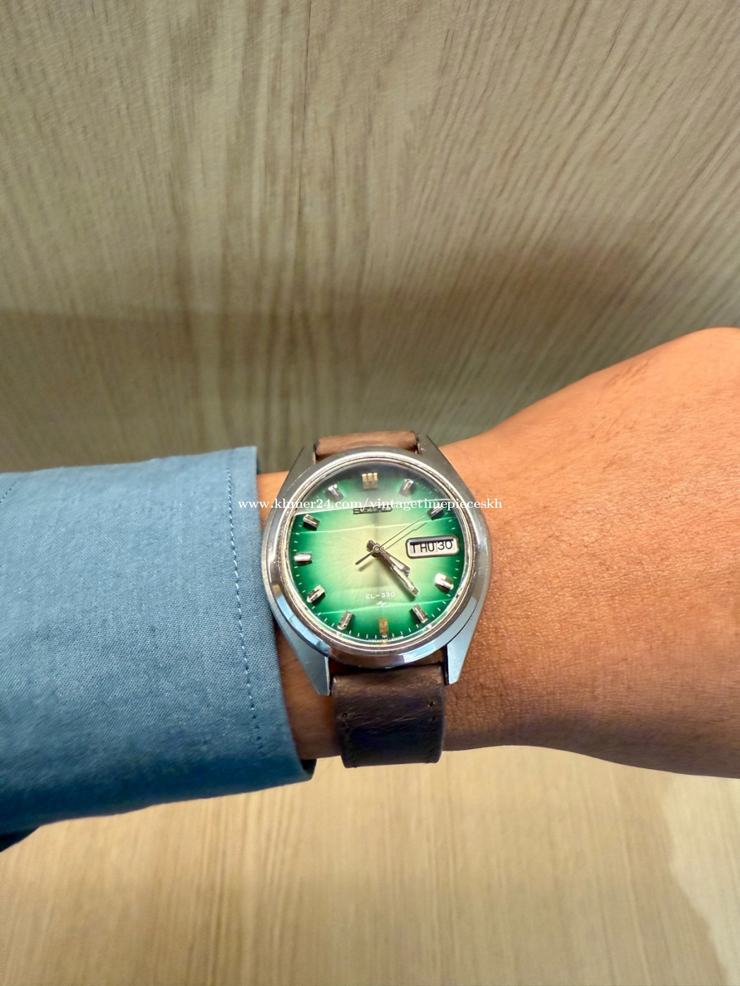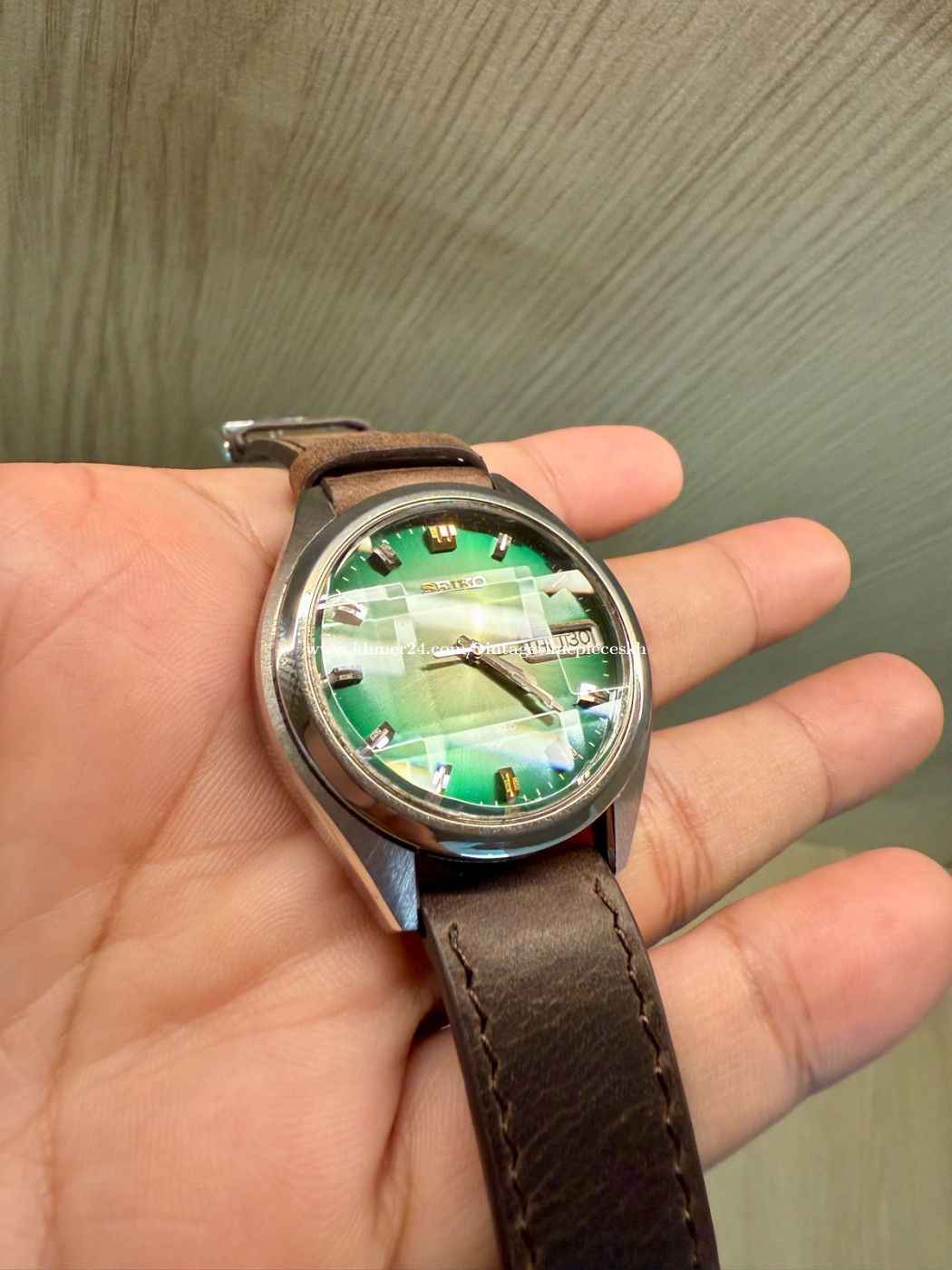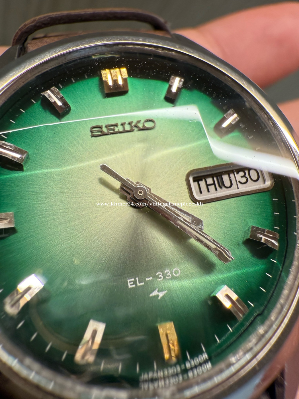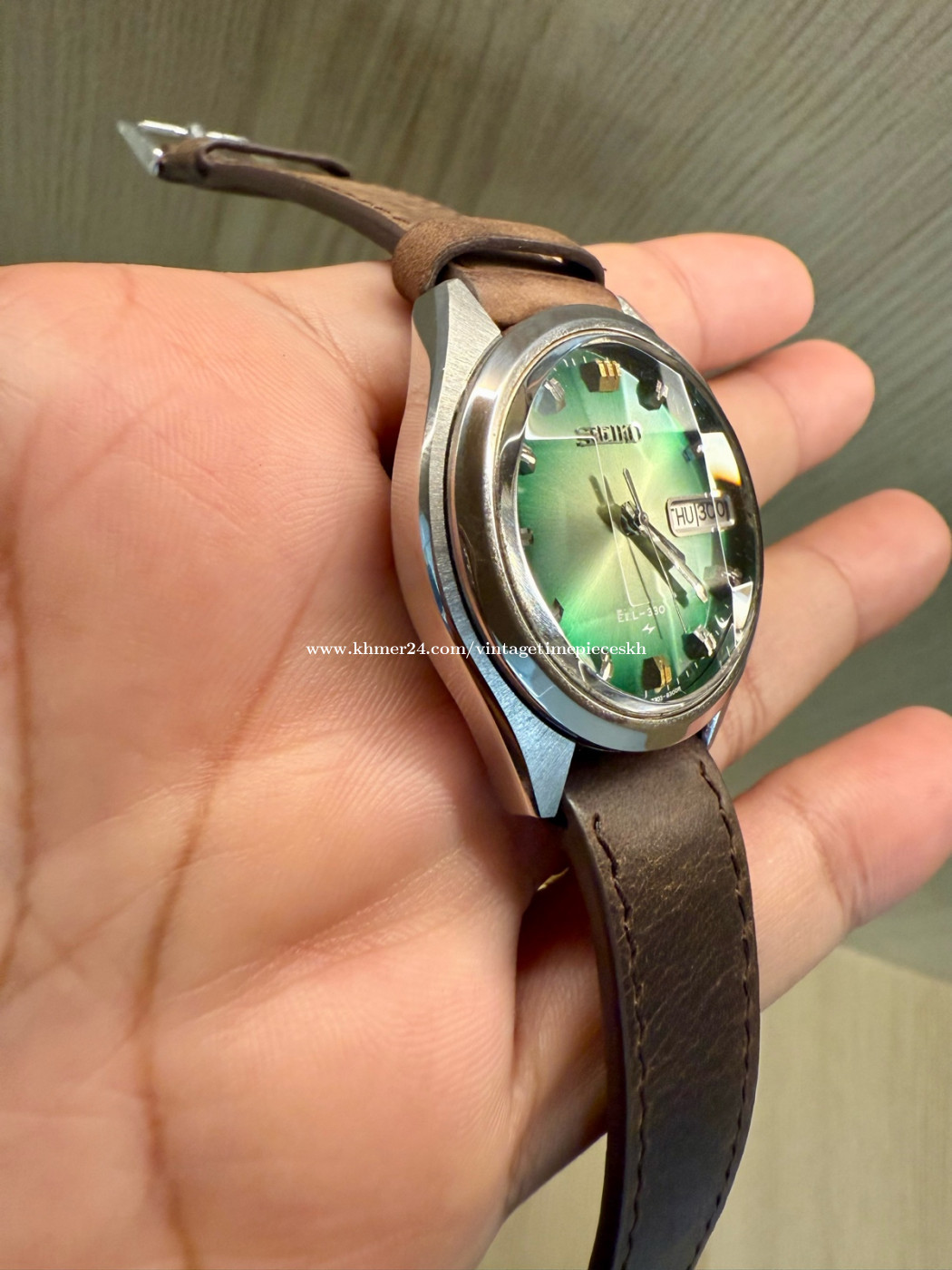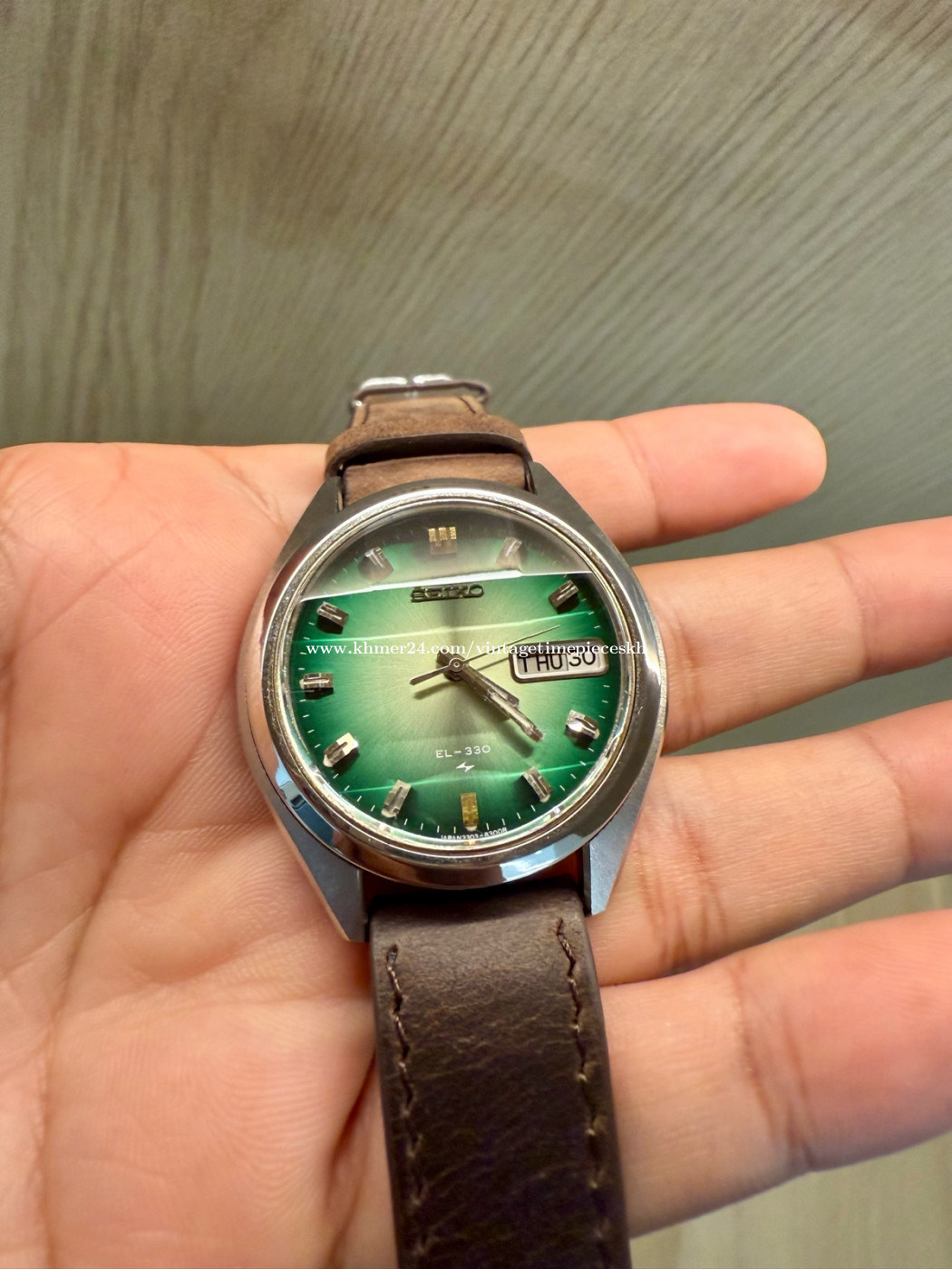 🔥ត្រកូល EL-330 មកដល់ហើយ 53ឆ្នាំសម្រាប់នាឡិកានេះ ទិញផ្ទាល់ពីអ្នកប្រមូលនាឡិកាក្រៅស្រុក From Watches Collector នាឡិកា Original Ultra Rare SEIKO EL-330 Electronic JDM Green Dial Faceted Crystal ដែលជានាឡិកាផ្ទៃពណ៌បៃតង ម៉ូដជំនាន់ 1972 ដែលមានអក្សរជប៉ុន(KANJI) និងអង់គ្លេ(ENGLISH)។ លក្ខណះពិសេសនៃនាឡិកាម៉ូដនេះ គឺប្រើប្រភេទម៉ាស៊ីន 3303 (Caliber 3303) ដែលជាការរួមបញ្ចូលរវាងប្រព័ន្ធមេកានិច និងអេឡិចត្រូនិក។ ម៉ូដែលនាឡិកាអេឡិចត្រូម៉េកានិច (Electro-mechanical) មានកង់តុល្យភាព (Balance Wheel) និងប្រព័ន្ធ escapement ដូចនាឡិកាមេកានិច ប្រើថាមពលពីថ្ម តាមរយៈម៉ូឌុល (Transistorized Control Module) ដែលបញ្ជូនចរន្តទៅកាន់ខ្សែចម្លងអេឡិចត្រូម៉ាញេទិច ដើម្បីរក្សាចរន្តដំណើរការ។ ម៉ាស៊ីនដំណើរការដោយថ្មដើរដូចអូតូ មានQuickset Date (ចុចក្បាលម៉ោងដើម្បីកំណត់ថ្ងៃ) មានត្បូងម៉ាសុីន Jewel 9 ដោយអត្រាចង្វាក់ការដើរ 21,600 bph។ កញ្ចក់9ជ្រុង បាតខាងក្រោមនាឡិកា មានកន្លែងប្តូរថ្មដោយឡែកមិនចាំបាច់ដោះគំរបម៉ាស៊ីន។ហើយនាឡិកានេះដោះចេញតាមកញ្ចក់ OPEN THRU GLASS។ នាឡិកានេះសព្វថ្ងៃក្លាយជារបស់កម្រ និងមានតម្លៃសម្រាប់អ្នកប្រមូលនាឡិកា ព្រោះវាជាផលិតផលបច្ចេកវិទ្យាដំបូងៗដែលបញ្ចូលអេឡិចត្រូនិកក្នុងប្រព័ន្ធម៉េកានិច។ នៅសំនុំដើម ស្អាតស្រាប់ មិនបាច់សម្អាតបន្ថែមទេ។ មកដល់ឥឡូវនេះមិនងាយរកទេបងប្អូន។ 💥តម្លៃ Price: 390$ Contact me for more information. Telegram: 078639xxxClick To Call Check out more content Facebook: https://www.facebook.com/profile.php?id=61572795407489 Instagram: https://www.instagram.com/vintage_timepieces_kh?igsh=MWtmb21nbGVoMDRvNg== Khmer24: https://www.khmer24.com/vintagetimepieceskh Tiktok: https://www.tiktok.com/@vintage.timepiecekh168?_t=ZS-8vlo6DXZ7sA&_r=1 ⌚ For Sale: Original Ultra Rare SEIKO EL-330 Electronic JDM Green Dial Faceted Crystal 3303, dial 38mm, Pre-owned. Machine working well. 📌 Model: Original Ultra Rare SEIKO EL-330 Electronic JDM Green Dial Faceted Crystal 🔘 Band Material: Leather Strap 🔘 Case Size: 38mm 🔘 Year Manufactured: Est 1972 🔘 Condition: Excellent vintage condition with minor signs of wear consistent with age. The watch has been well-maintained and is fully functional. The crystal is clear, and the band shows minimal wear. *ធានាលើម៉ាសុីន 1ខែ ប្រសិនមានបញ្ហាធ្វើជូនឥតគិតថ្លៃ។