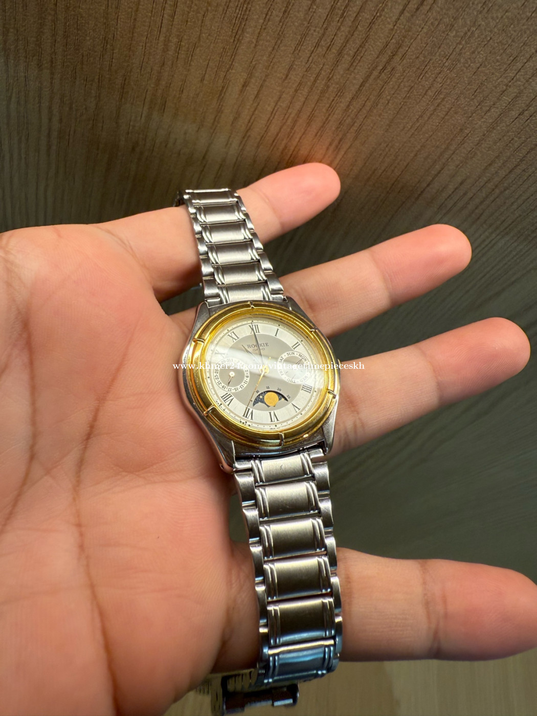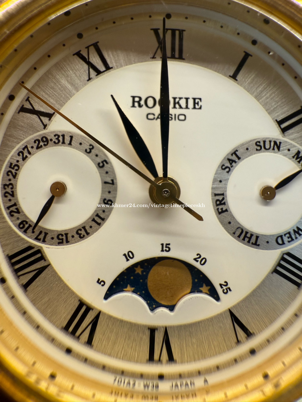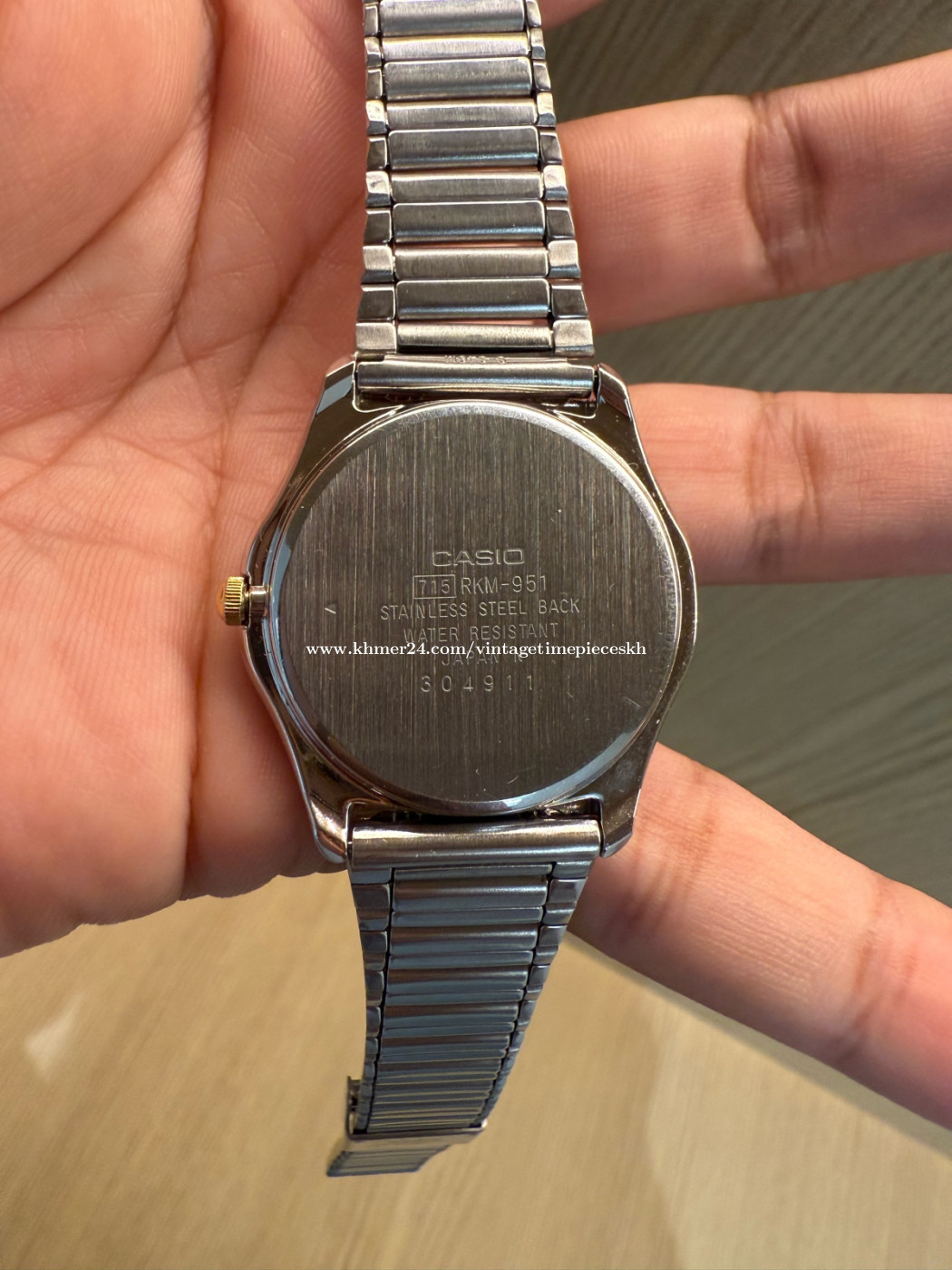 🔥នាឡិកា Vintage Casio Moon Phase Rookie មានតែមួយគ្មានពីរ នាឡិកា Original Ultra Rare Vintage CASIO ROOKIE Moon Phase RKM-951 Day-Date ដែលជានាឡិកាផ្ទៃពណ៌ស តួលាយមាស ម៉ូដែលRookie Moon Phaseនេះមិនងាយមានទេ ម៉ាស៊ីនដំណើរដោយថ្ម។ មួយគ្រឿងនេះពិសេសត្រង់ថាទិញផ្ទាល់ពីអ្នកស្រលាញ់នាឡិកាដែលប្រមូលនាឡិកាចាស់ៗ ហើយថែនាឡិកានៅស្អាតទាំងអស់ នៅសំនុំដើម ស្អាតស្រាប់ មិនបាច់សម្អាតបន្ថែមទេ។ មកដល់ឥឡូវនេះមិនងាយរកទេបងប្អូន។ 💥តម្លៃ Price: 335$ Contact me for more information. Telegram: 078639xxxClick To Call Check out more content Facebook: https://www.facebook.com/profile.php?id=61572795407489 Instagram: https://www.instagram.com/vintage_timepieces_kh?igsh=MWtmb21nbGVoMDRvNg== Khmer24: https://www.khmer24.com/vintagetimepieceskh Tiktok: https://www.tiktok.com/@vintage.timepiecekh168?_t=ZS-8vlo6DXZ7sA&_r=1 ⌚ For Sale: Original Ultra Rare Vintage CASIO ROOKIE Moon Phase RKM-951 Day-Date, dial 36mm, Pre-owned. Machine working well. 📌 Model: Original Ultra Rare Vintage CASIO ROOKIE Moon Phase RKM-951 Day-Date 🔘 Band Material : Stainless Steel 🔘 Case Size: 36 mm 🔘 Year Manufactured: Est 1990s 🔘 Condition: Excellent vintage condition with minor signs of wear consistent with age. The watch has been well-maintained and is fully functional. The crystal is clear, and the band shows minimal wear. *ធានាលើម៉ាសុីន 1ខែ ប្រសិនមានបញ្ហាធ្វើជូនឥតគិតថ្លៃ។