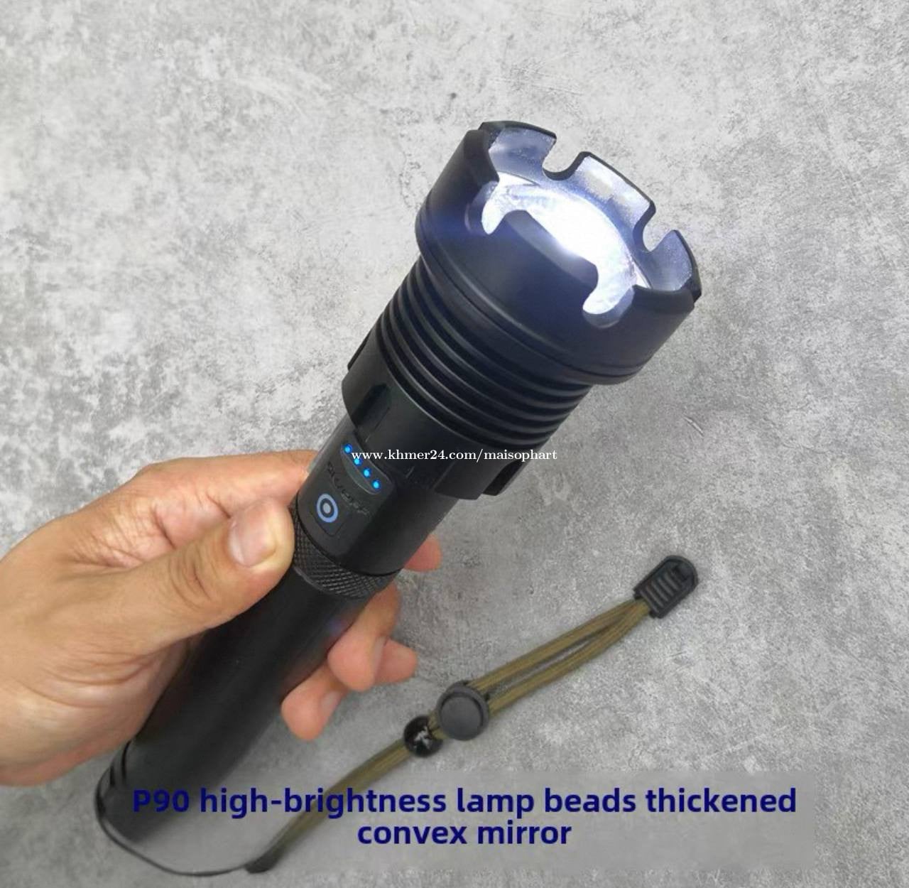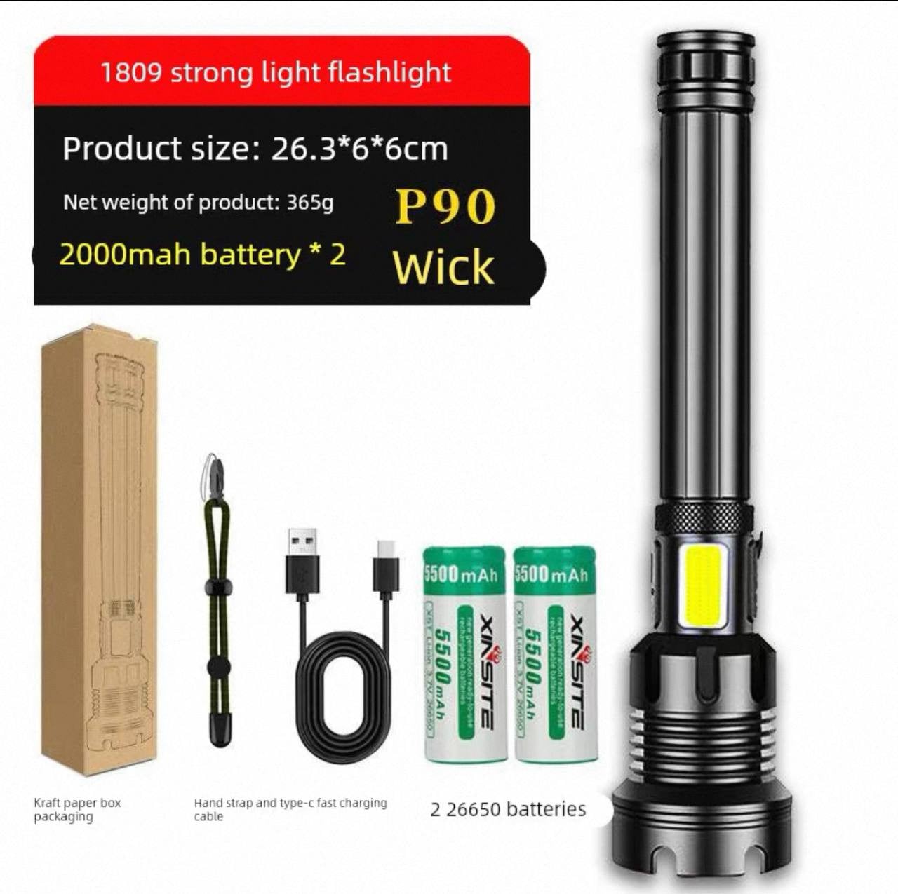 P90 Strong Light Flashlight, Waterproof, Portable, Self-Defense, Outdoor, Car-Mounted, Multi-Functional Side Light, Rechargeable Flashlight