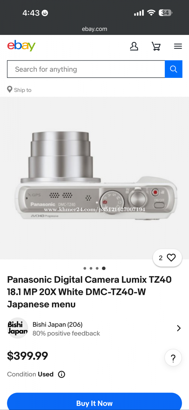 Panasonic Lumix DMC-TZ40. Touch sreen Its very good camera, clear, good battery, GPS, Wifi, memry64G, with charger. Interest call