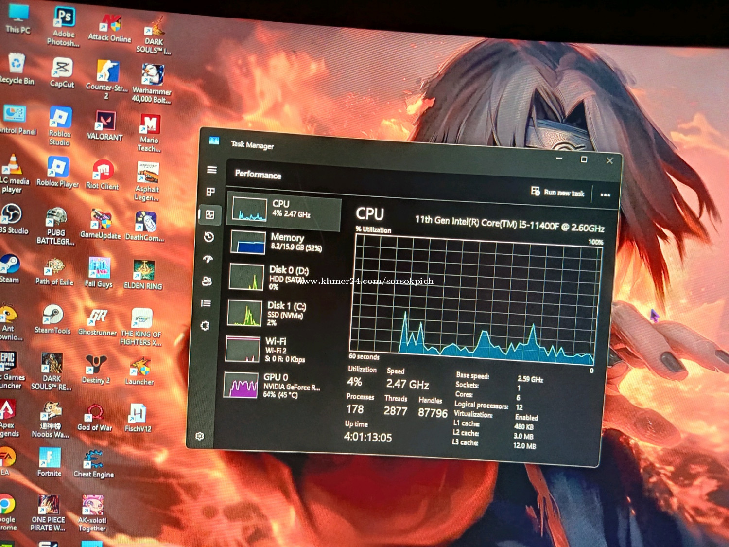 i5 11400F RTX 3060 12G Ram 16G (3200) (2/4Slot) M.2 512G + 1T PSU SAMA GS 750 Case Antec P120 Crystal (White) (នៅមិនទាន់បកថងកញ្ចក់ស្អាតដូចថ្មីនៅទាំងប្រអប់) Monitor Gigabyte 27inch 165hz(ខ្កូតបន្តិច) តម្លៃ700$ ទាំងPC និង Monitor (អាចចរចាបាន) Price 700$ Both Pc and Monitor (Price can negotiate) ទទួលការវាយដូរផ្សេងៗ (Accept other thing trade Offer) Game Performance Fortnite (Epic setting 100fps) Cyberpunk (Ultra 70-80fps) CS2 (Very high 130-150fps) Black myth Wukong (High 60fps+) Forza horizon 5 (Extrem 60-70fps) Pubg (Ultra 130-175fps) GTA V ( Very high 110-135fps)