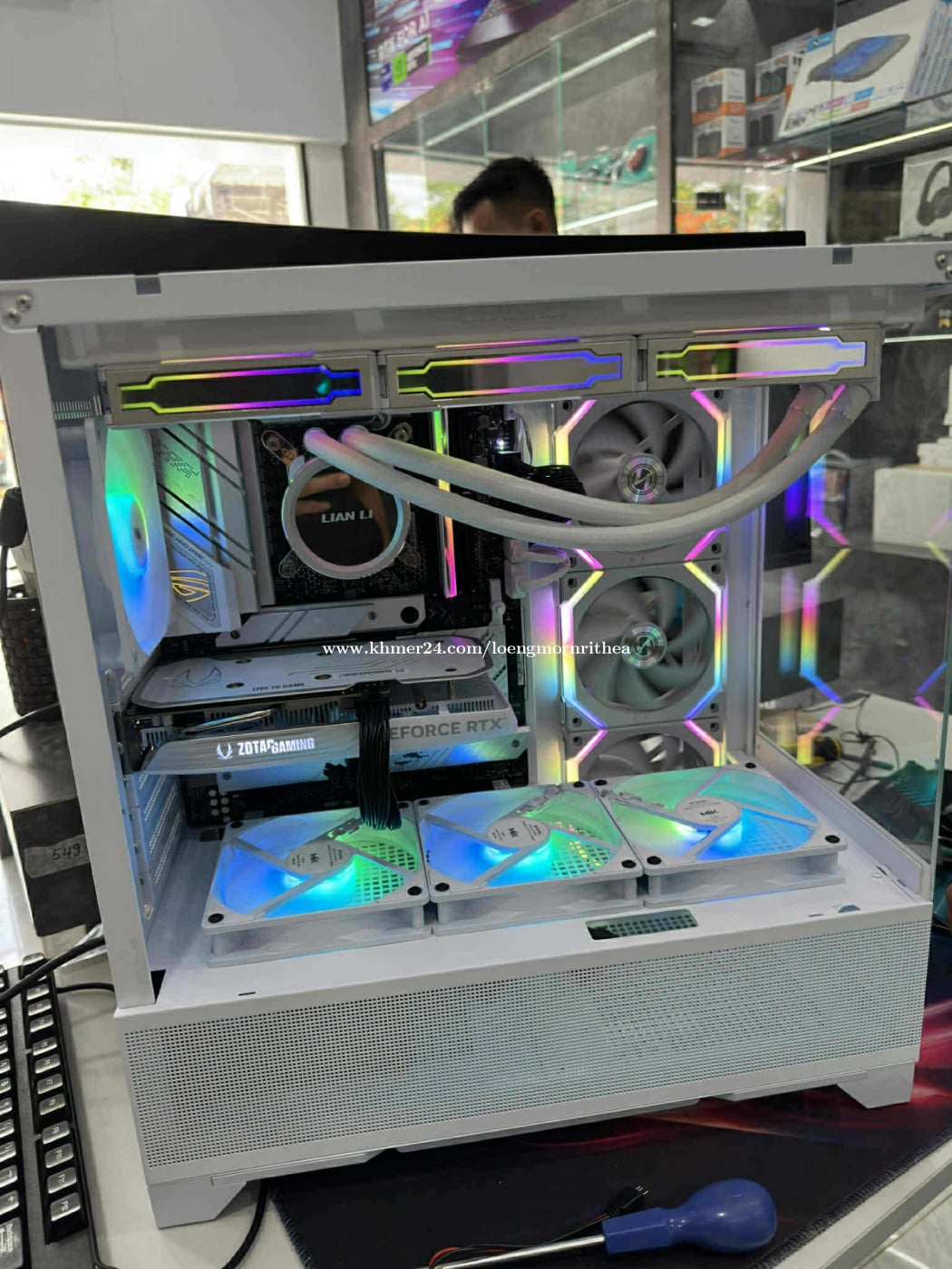 CPU: Intel® Core™ i7-13700K Processor (30M Cache, up to 5.40 GHz) VGA: ZOTAC GAMING GEFORCE RTX 4060 8GB Twin Edge OC CPU FAN: LIAN LI: GA Il Trinity 360 SL-Inf White RAM: G-Skill GAMING TRIDEN Z5 RGB DDR5 6000MHz 32GB x 2 = 64GB MB : ROG STRIX B760-A GAMING WIFI D5 Storage: 990 Pro M.2 PCle 4.0 1TB Read/Write Speeds up to 7,450/6,900 MB/s POWER: CAM POWER GT 850 80 PLUS GOLD CASE: Mik Lumine White Fan Case: LIAN LI: SL120V2-3W White Cooler UPS: Prolink 1250VA Pro1202SFCU Monitor : Gigabyte G27Q Gaming Moniter 27 Inch | 2K QHD | IPS | 144Hz | FreeSync Premium | 1ms (MPRT)