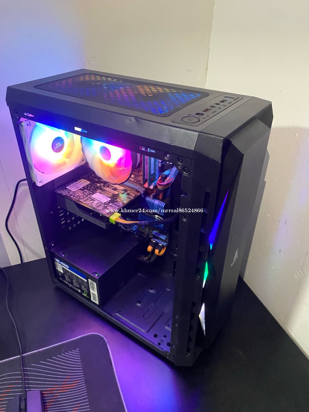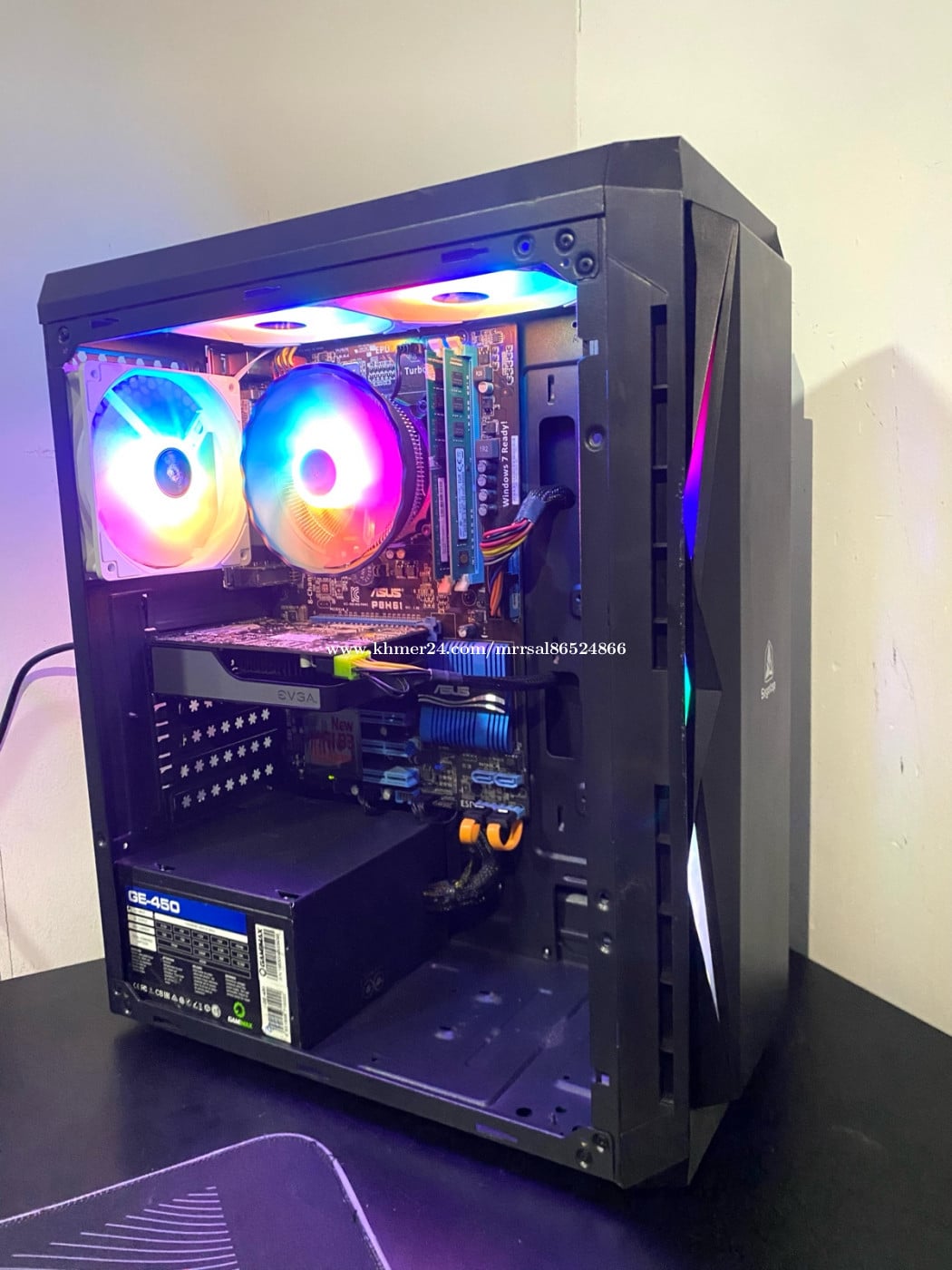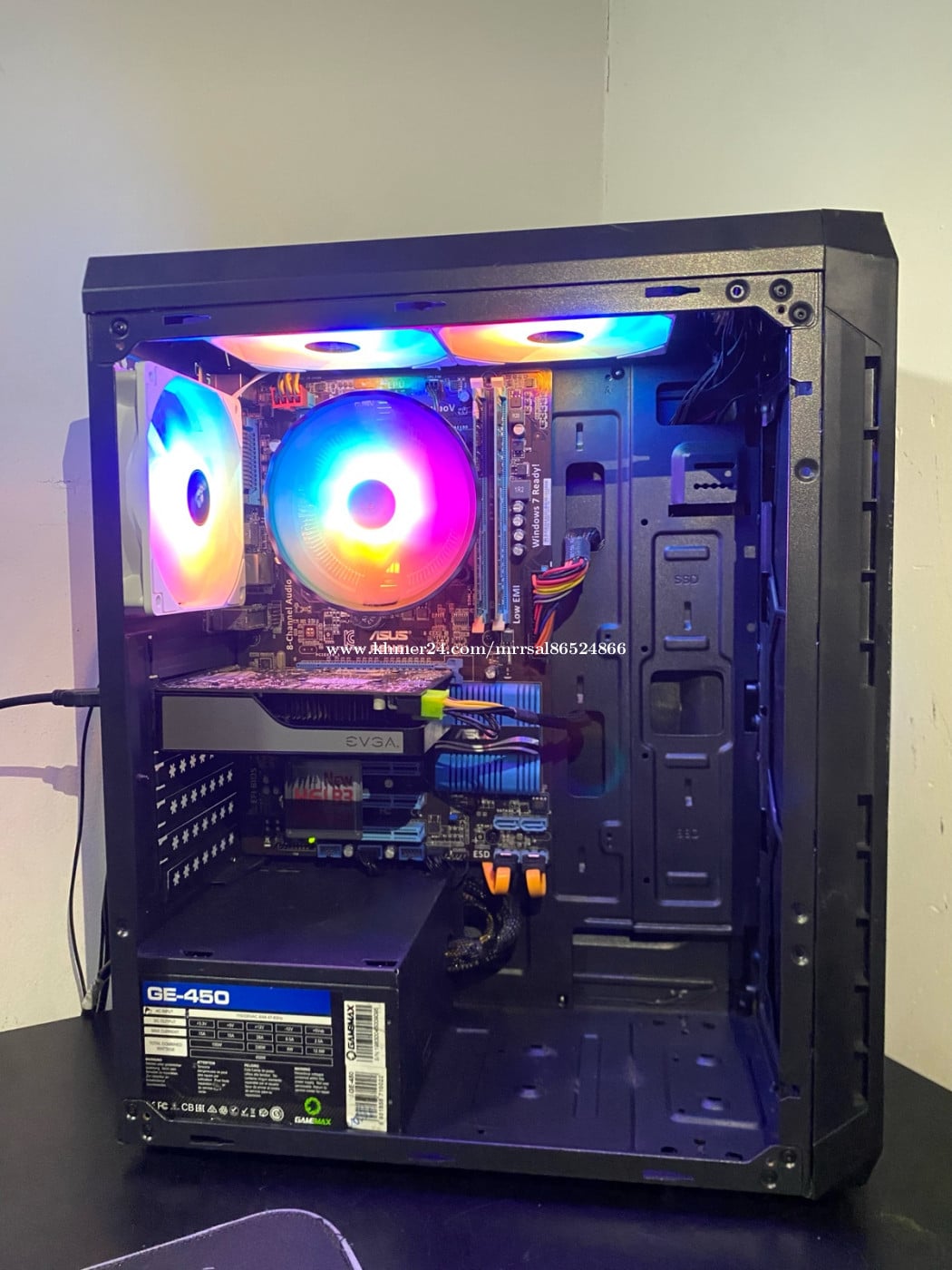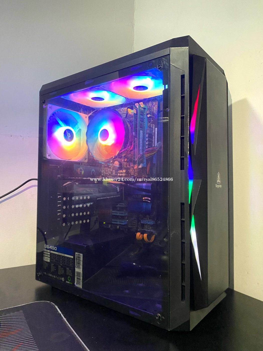 CPU : Intel Core i5 3570 (3.00GHz) MB : GIGABYTE P61A-D3 (2nd/3rd Gen) RAM : SAMSUNG DDR3 8G (1600MHz) SSD : ADATA 128G (Window10Pro) HDD : WD Green 500G (Drive D) PSU : SUPRMEGAME 350W (80Plus) CASE : Segotep ATX GAMING (RGB) FAN CPU : SnowMan (RGB Rainbow) FAN CASE : SnowMan (RAINBOW X3) GPU : EVGA GTX 650 1G (GDDR5)