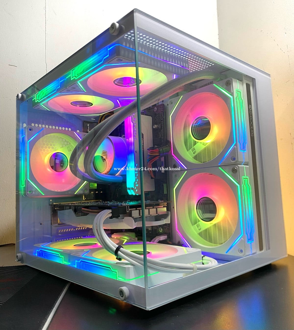 CPU : Intel Core i5 8400 (3.00GHz) RAM : Corsair DDR4 16G (3600MHz) MB : Asus PRIME H310M-K (9th Gen) SSD : Colorful 256G (Window10Pro) HDD : WD BLUE 1000G (1T SATA) PSU : Aigo White 450W (Original Full) CASE : EveSky MATX (កញ្ចាក់មុខចំហៀង) COOLER : Liquid ID-Cooling 240 (ARGB Sync) FAN CASE : MetalFish 4Pro (ARGB Sync X7) GPU : GALAXY GTX 1050Ti 4G (GDDR5) Telegram : https://t.me/thatkosal Tel : 011471xxxClick To Call តម្លៃចរចាបាន ធានាមួយខែ មានទទួល Build/Upgrade និងជួសជុល PC គ្រប់ប្រភេទ