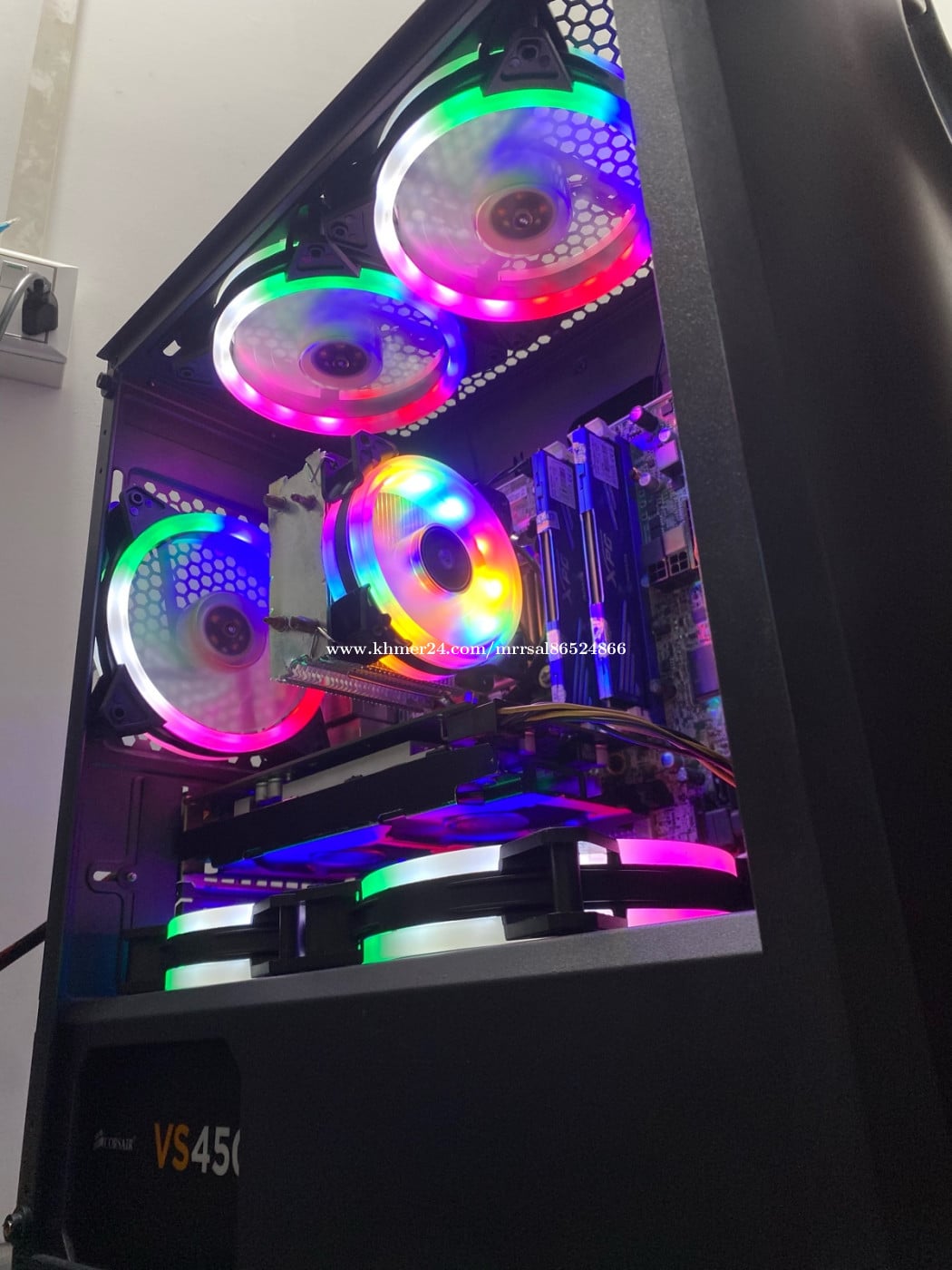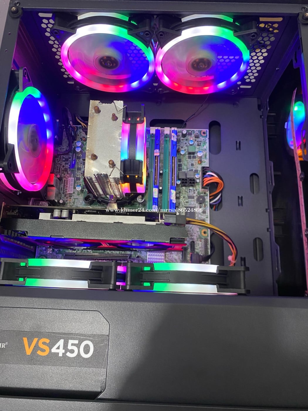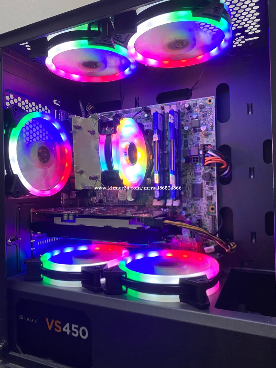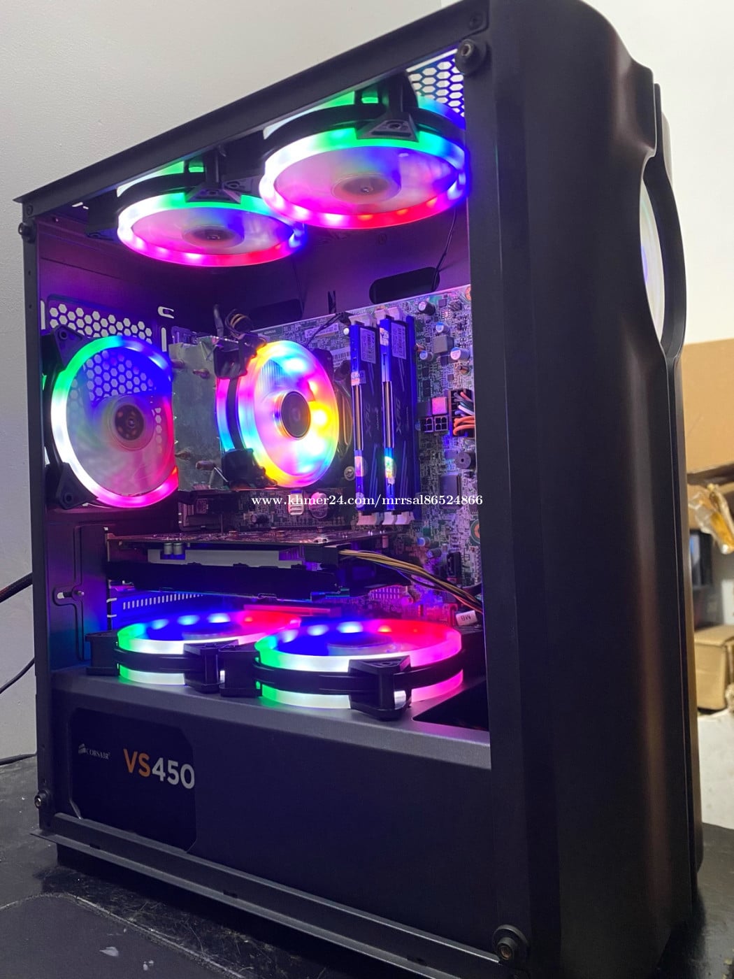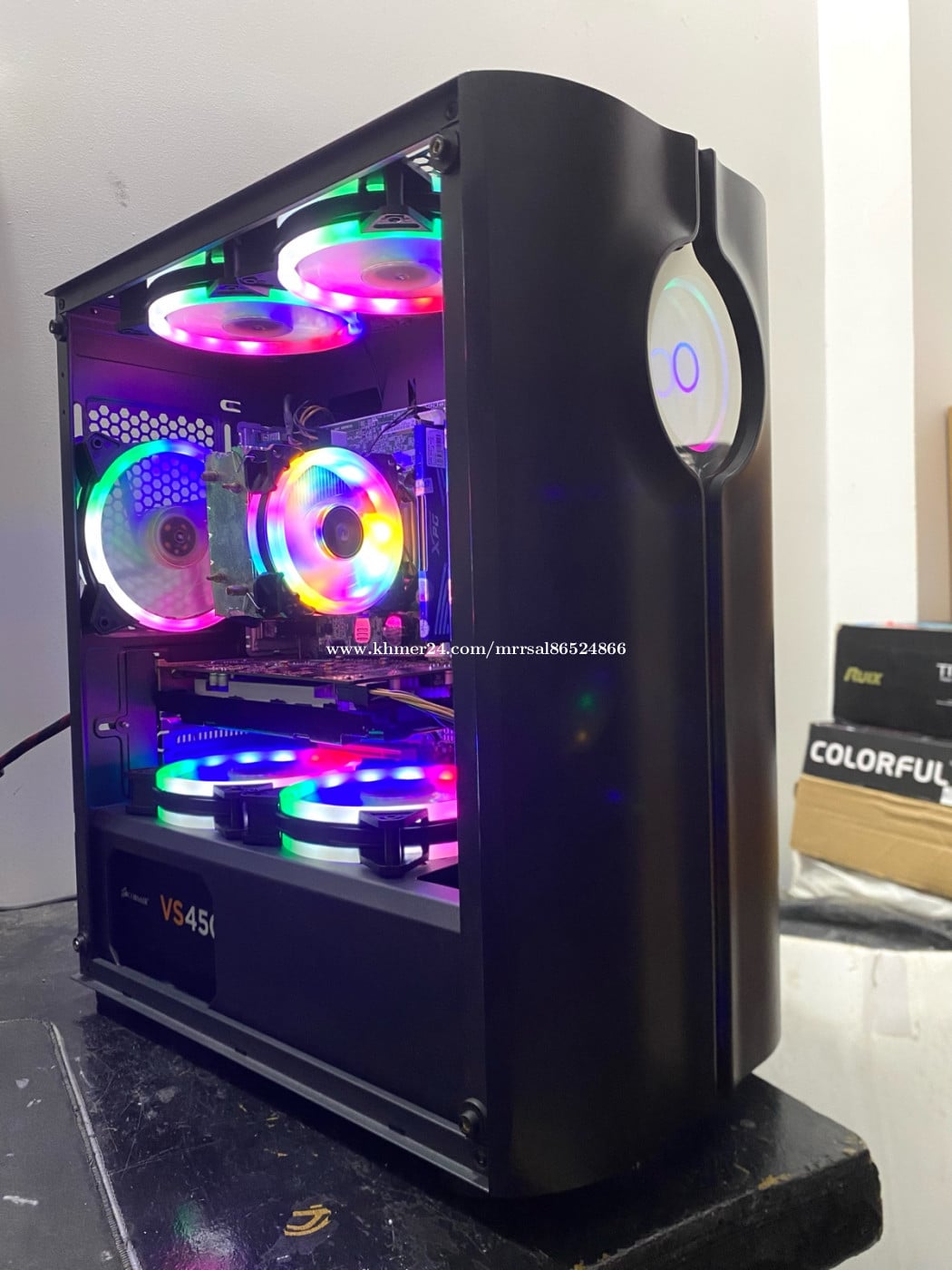 CPU : Intel Core i5-4440 (3.10GHz) MB : LENOVO H81 (4th Generation) RAM : XPG BLUE DDR3 8G (1600MHz) SSD : Colorful 128G (Window10) HDD : SEAGATE 500G (Drive D) PSU : CORSAIR 450W (Orginal Full) CASE : WJCOOLMAN (GAMING RGB) FAN CPU : SNOWMAN (RGB Rainbow) FAN CASE : CoolMoon (RGB Rainbow X5) GPU : Nvidia msi GTX 650 1G (GDDR5)