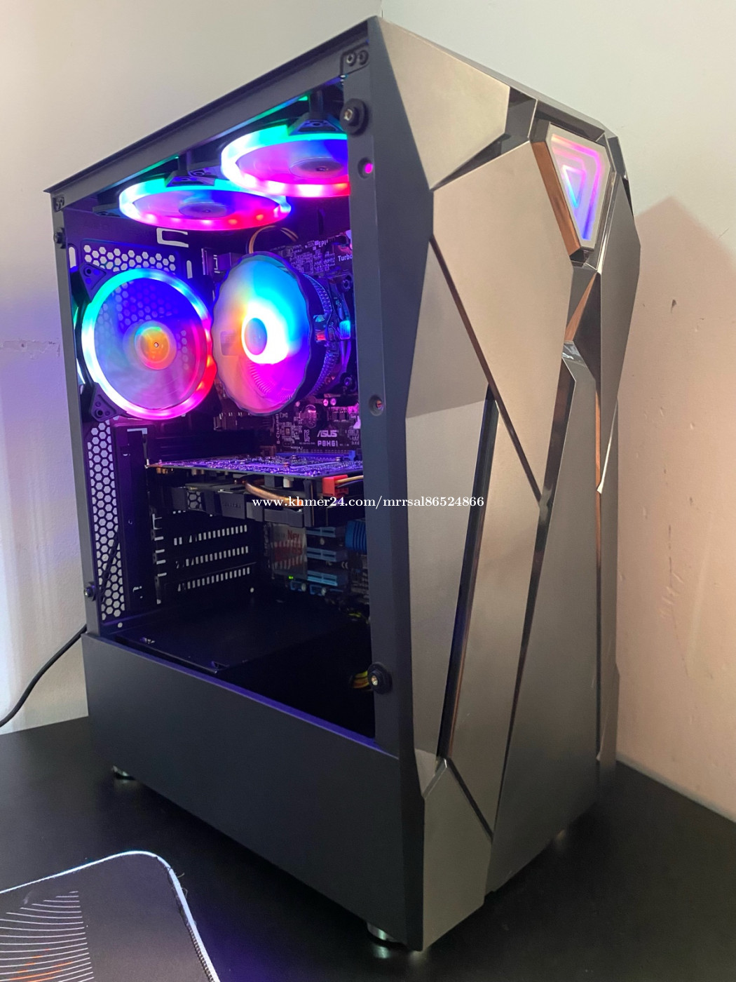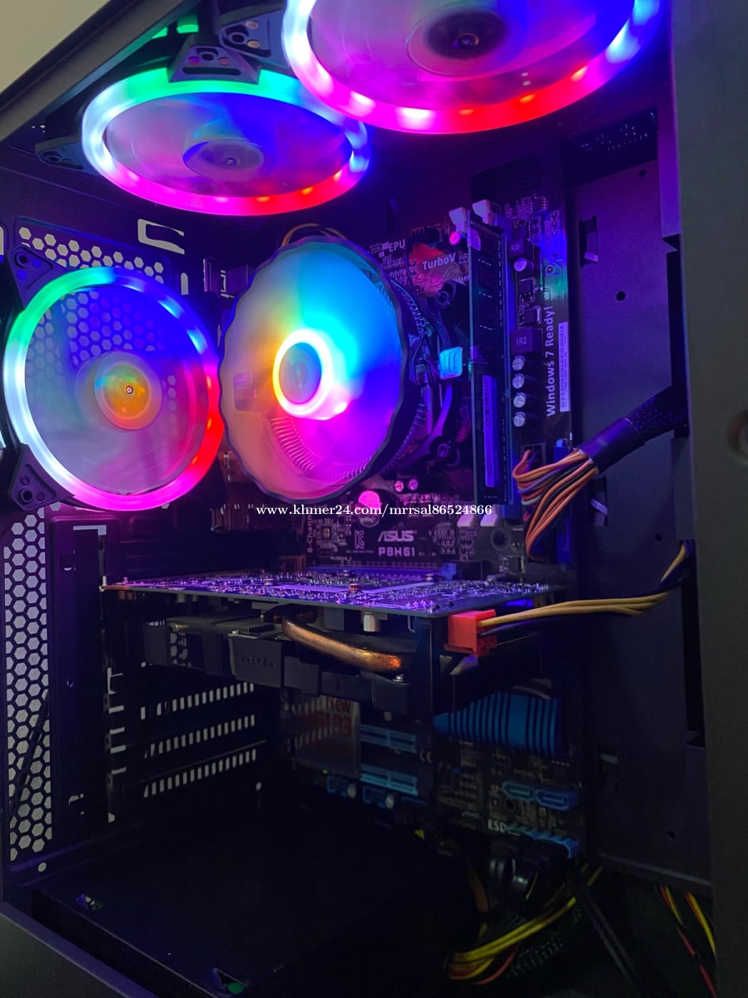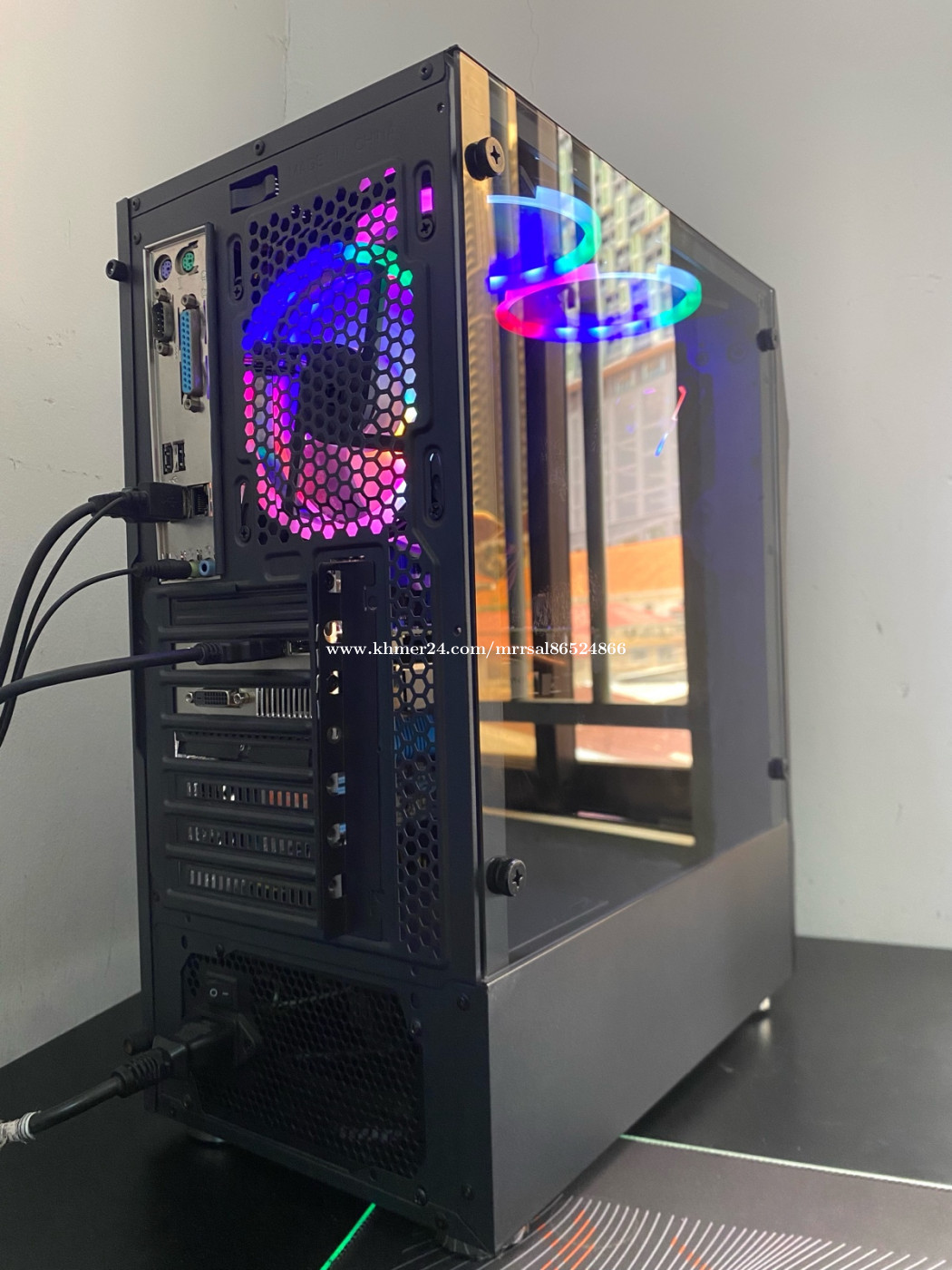 CPU : Intel Core i7 3760S (3.60GHz) RAM : ADATA DDR3 8G (1333MHz) MB : Asus PBH61 B3 ATX (2/3Gen) SSD : ADATA 128G (Window10Pro) HDD : HATACHI 500G (Drive D SATA) PSU : POWERSUN 450W (Original Full) CASE : Ruix ATX RGB (កញ្ចក់ចំហៀង) COOLER : Fan CPU (RGB Rainbow) FAN CASE : CoolMoon (RGB X3) GPU : msi Twin Frozr GTX 660 2G (GDDR5)