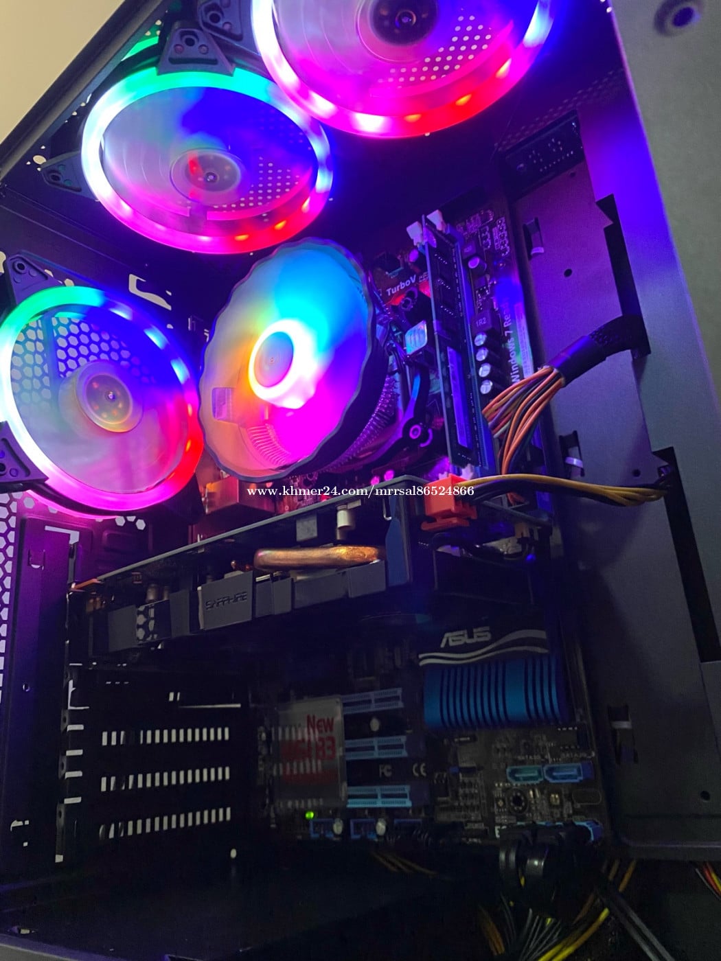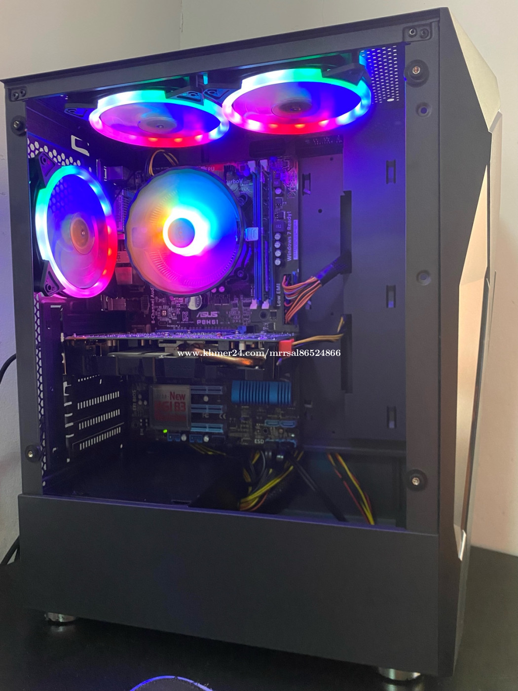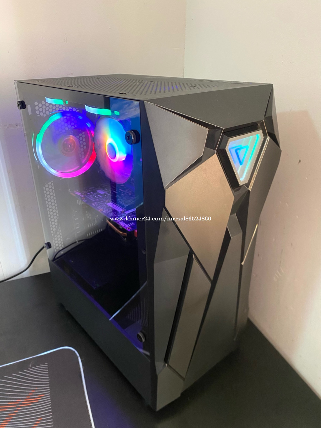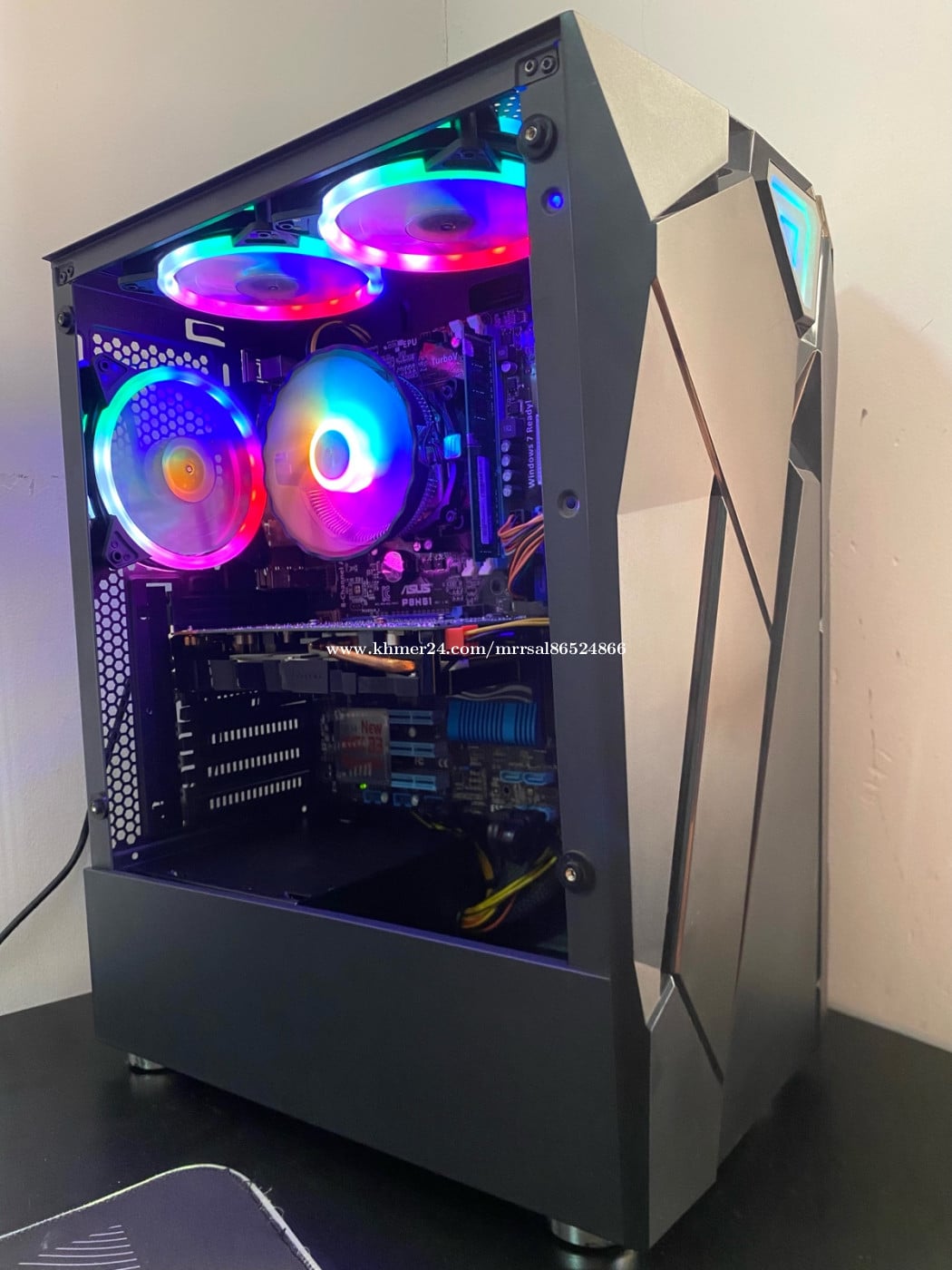 CPU : Intel Core i7 3760S (3.60GHz) RAM : ADATA DDR3 8G (1333MHz) MB : Asus PBH61 B3 ATX (2/3Gen) SSD : ADATA 128G (Window10Pro) HDD : HATACHI 500G (Drive D SATA) PSU : POWERSUN 450W (Original Full) CASE : Ruix ATX RGB (កញ្ចក់ចំហៀង) COOLER : Fan CPU (RGB Rainbow) FAN CASE : CoolMoon (RGB X3) GPU : msi Twin Frozr GTX 660 2G (GDDR5)