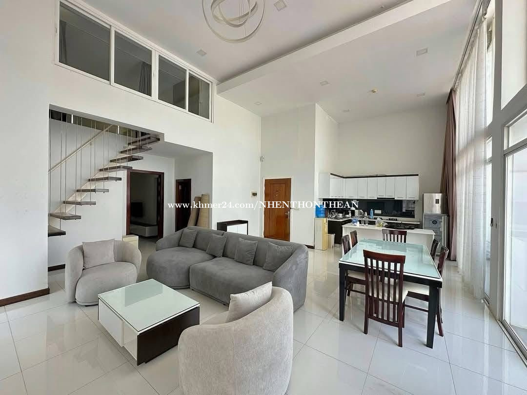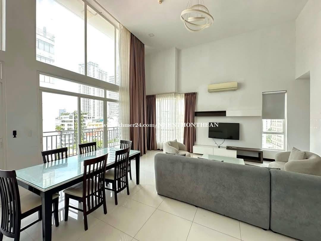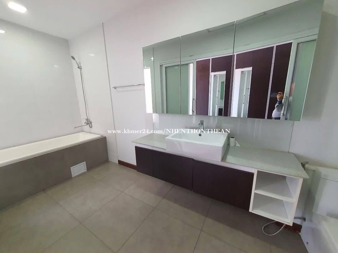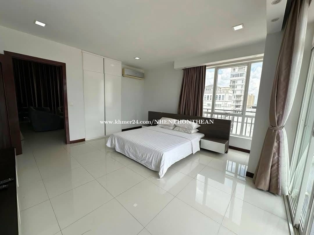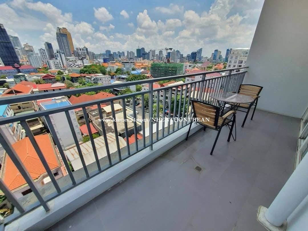 Service Apartment For Rent in Tonle Bassac Area Price: $1800 per month - Floor: 09 - Size: 148sqm - 2 Bedrooms - 2 Bathrooms - 1 Living room - 1 study room - 1 Kitchen - 2 Balonies - 3 AC - Washing machine Included: - Management fee - Cable Wifi - Gym - Pool - cleaning services 2 times per week - Parking. Other fee: - Water 5$ Per Person - Electricity: 0.25$/kw