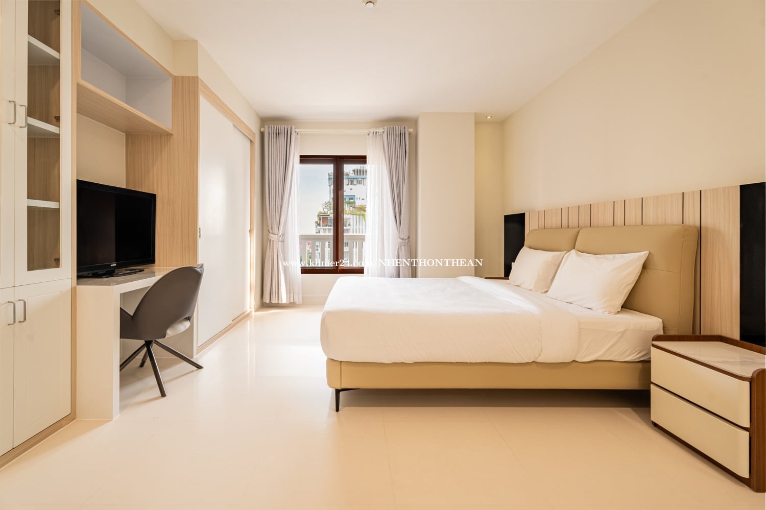 Service Apartment 4 Bedrooms For Rent in BKK1 Price: 3800$ Per Month Negotiable Bedrooms: 04 Bathroom :04 Fully Furniture Service Included: Pool, Jacuzzi, Gym, Steam, Sauna, Cleaning, Parking Space, Security24.