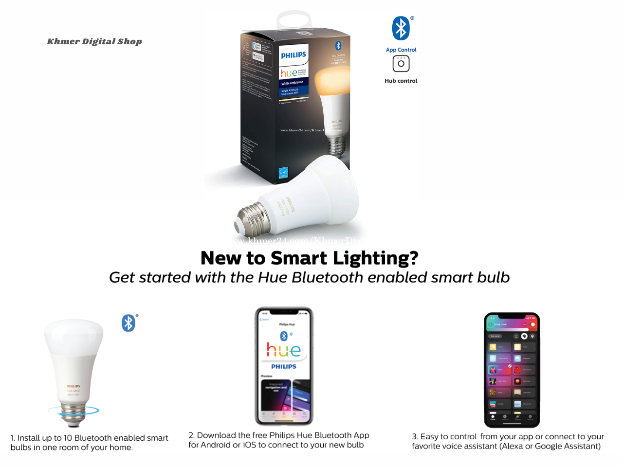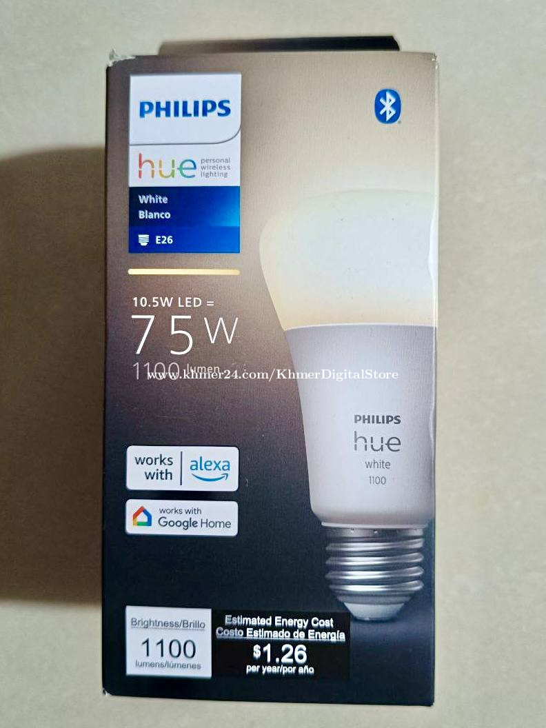 Philips Hue Smart 75W A19 LED Bulb - Soft Warm White Light - 1 Pack - 1100LM - E26 _______ ● 1-Month Warranty ● FREE Delivery ● Price $39 🔎 Khmer Digital Store ☎️ Contact: 089845xxxClick To Call / 098855xxxClick To Call 📨 Telegram: https://t.me/KhmerDigitalStore