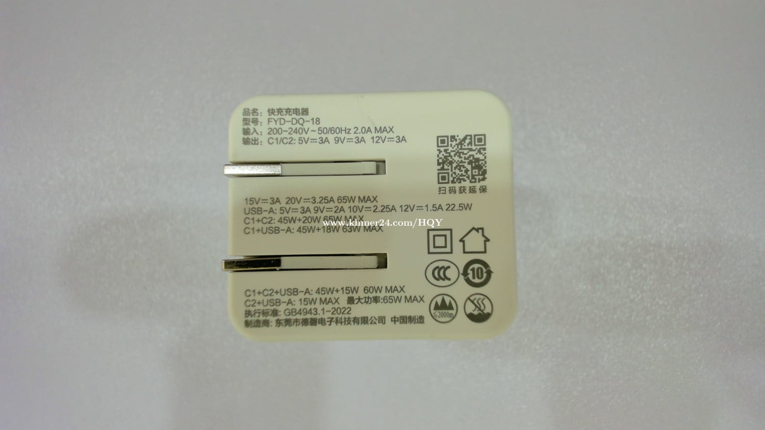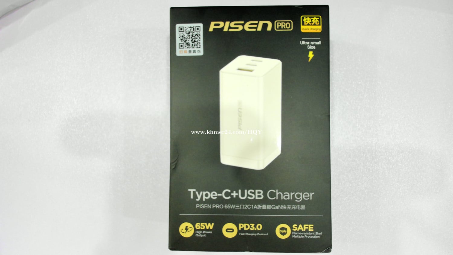 CHARGER apdater 65W ;Type-C +USB Macbook; notebook, Phone Free *1 Pisen Charging Cable Type-C=Type-C (1.2m) Warranty 6 Months