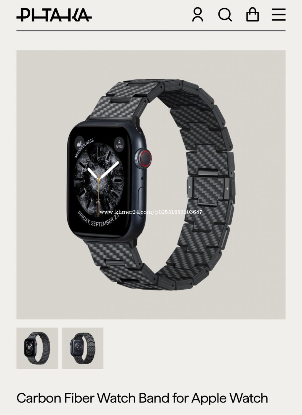 Pitaka Carbon Fiber Watch Band for Apple Watch 90% World’s first watch band with 100% carbon fiber links compatible with all Apple Watch models including Series 11-1, SE3/SE, and Ultra 3/Ultra 2/Ultra. Rare and durable 1K carbon fiber Size: 42/44/45/46/49mm & 38/40/41mm Adjustable watch band bracelet length Lightweight and comfortable Patented secure magnetic clasp Modern and Retro styles