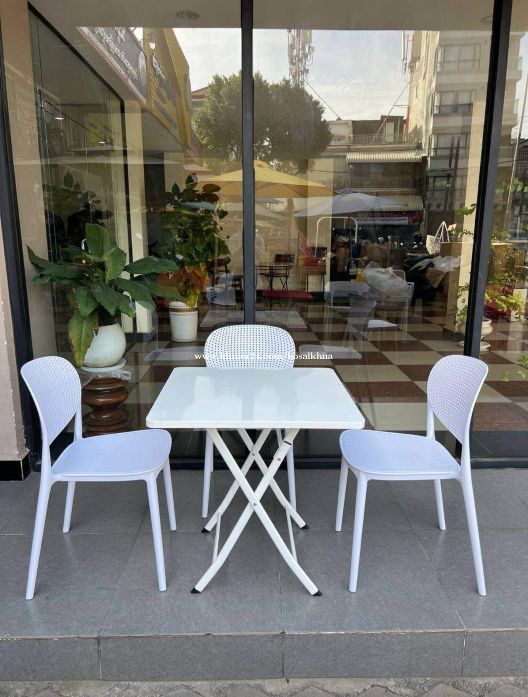 plastic outdoor dining set - table W69*D69*H71cm =38$ - Chair 18$ - Payment when shipping completed ( in Phnom Penh City ) - order now delivery now - contact:0978384xxxClick To Call/0966802xxxClick To Call - telegram: https://t.me/Kosalkhna168