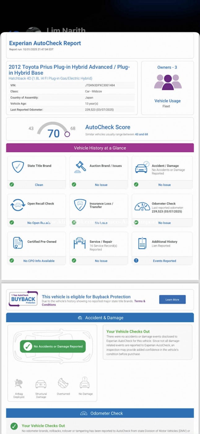 2012 Plug-in សាកថ្ម ឡានCali Autocheckជាប់ ឡានមូល ❤️️ ✅សាង 16+ រៀបចំម៉ាស្អាត $18,xxx ☎️ 086477xxxClick To Call https://t.me/seaauto 👉 ចូលក្រុមសាងឡាន: https://t.me/Sarmsea_Pharlan