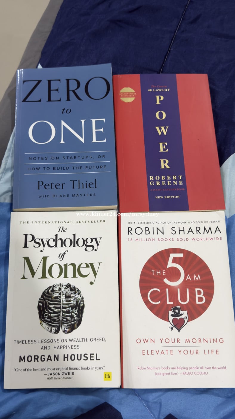 π Condition: Very good / Clean pages π Language: English π Original print (not photocopy) π Selling as a set (4 books together) π Book List: 1οΈβ£ Zero to One β Peter Thiel 2οΈβ£ 48 Laws of Power β Robert Greene 3οΈβ£ The Psychology of Money β Morgan Housel 4οΈβ£ The 5 AM Club β Robin Sharma β¨ Why buy this set? β Best books for mindset, money & success β Perfect for entrepreneurs, students & professionals β Very popular titles, hard to find cheap in Cambodia β Great value bundle π Location: Near Furi Times Square Mall π Delivery: Self pickup π Telegram Contact: @intoxication100 (Fast Response)