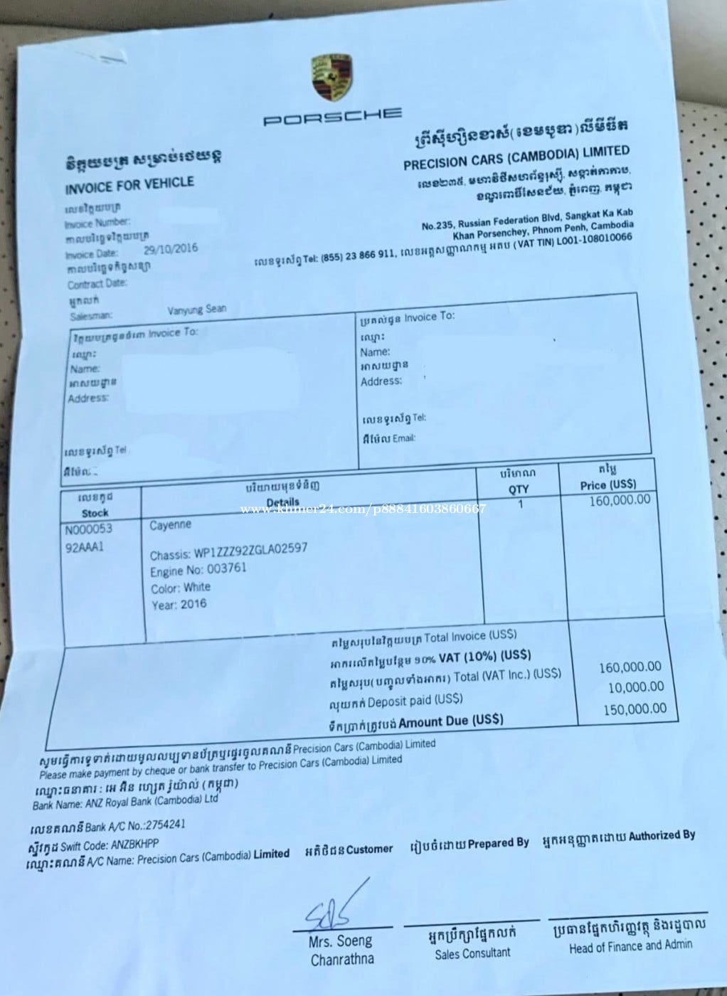 Porsche Cayenne 2016 ប្រភេទឡានកម្រនៅថ្មីទិញពីក្រុមហ៊ុនផ្ទាល់ » ម៉ាសុីនសាំងសុទ្ធ V6 3.6 » កម្រមានឡាននៅថ្មីខ្លាំង » ឡានគីឡូហ្សីន 8មុឺនគីឡូជាង » តម្លៃ 45,000$ ទំនាក់ទំនងលេខទូរសព្ទ័: 011975xxxClick To Call (telegram), 016488xxxClick To Call