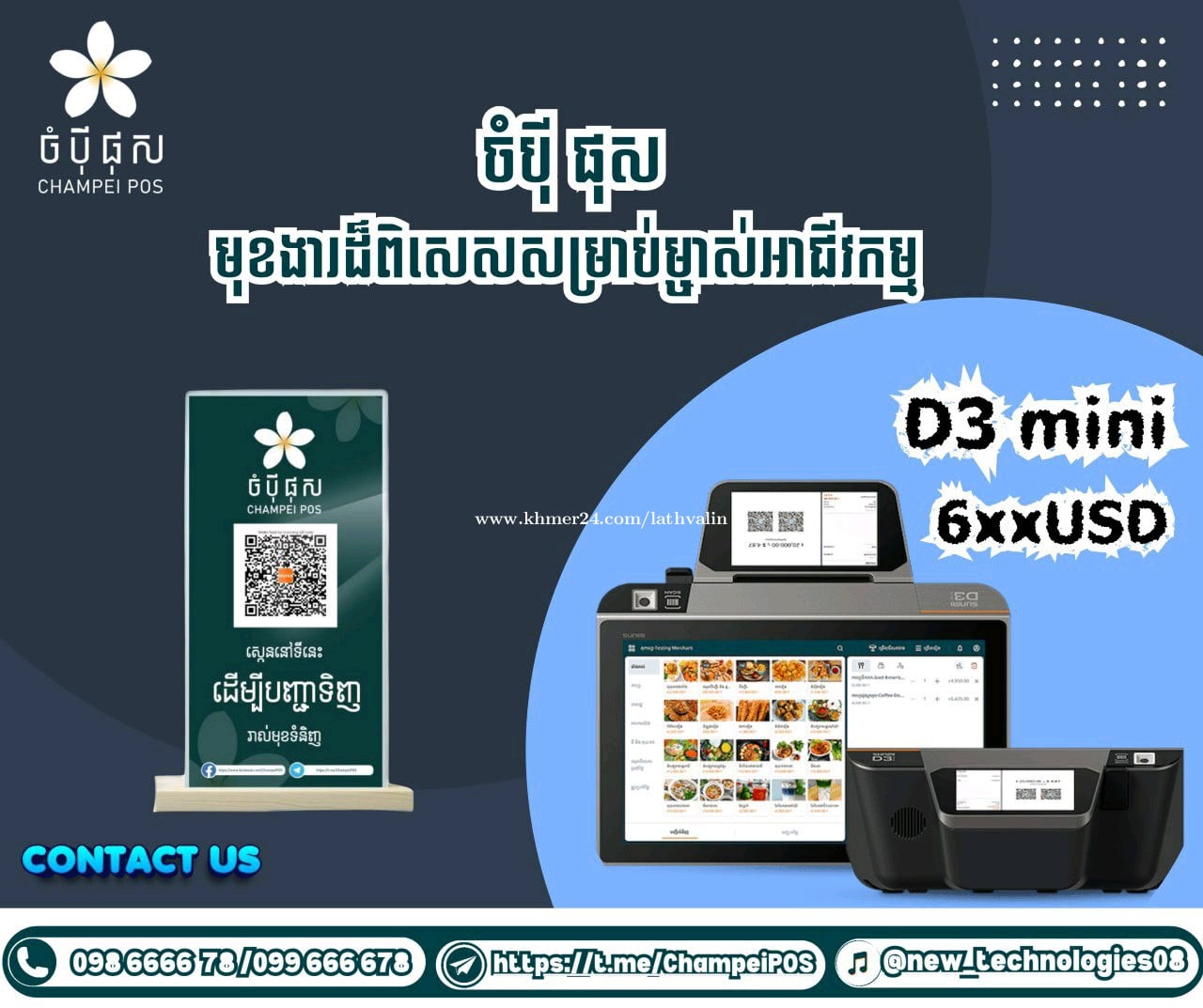 កាន់តែមានភាពងាយស្រួលសម្រាប់ម្ចាស់អាជីវកម្មគ្រប់ប្រភេទ ជាមួយប្រព័ន្ធគ្រប់គ្រងអាជីវកម្ម ចំបុី ផុស រួមទាំងអត្ថប្រយោជន៍ជាច្រើនដូចជាៈ -ចំណេញពេលវេលា -គ្រប់គ្រងស្តុកបានច្បាស់លាស់ -ពិនិត្យរបាយការណ៍បានភ្លាមៗ -បញ្ជាទិញតាម QR code បានដោយខ្លួនឯង -គ្រប់គ្រងតុដែលនៅមាន និងតុដែលកក់រួច -ការធ្វើប្រូម៉ូសិន សម្រាប់អតិថិជន រួមជាមួយមុខងារដ៍សំបូរបែបជាច្រើនទៀត ដើម្បីជួយបង្កើនការលក់ ចាប់ផ្ដើមអាជីវកម្ម ចាប់ផ្ដើមជាមួយចំប៉ី ផុស! ☎️ ទំនាក់ទំនងផ្នែកលក់៖ 093300xxxClick To Call/098666xxxClick To Call Telegram: https://t.me/ChampeiPOS