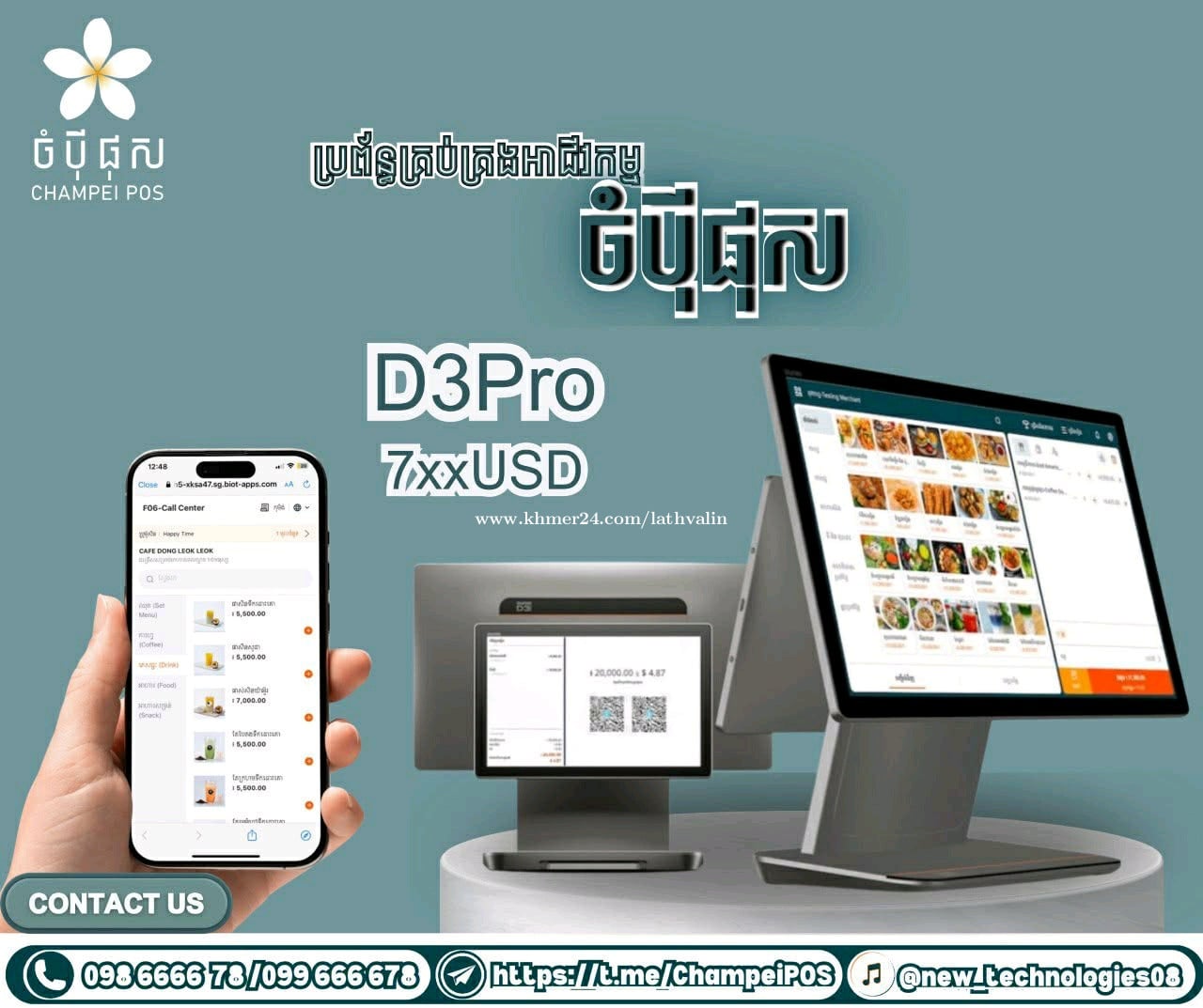 កាន់តែមានភាពងាយស្រួលសម្រាប់ម្ចាស់អាជីវកម្មគ្រប់ប្រភេទ ជាមួយប្រព័ន្ធគ្រប់គ្រងអាជីវកម្ម ចំបុី ផុស រួមទាំងអត្ថប្រយោជន៍ជាច្រើនដូចជាៈ -ចំណេញពេលវេលា -គ្រប់គ្រងស្តុកបានច្បាស់លាស់ -ពិនិត្យរបាយការណ៍បានភ្លាមៗ -បញ្ជាទិញតាម QR code បានដោយខ្លួនឯង -គ្រប់គ្រងតុដែលនៅមាន និងតុដែលកក់រួច -ការធ្វើប្រូម៉ូសិន សម្រាប់អតិថិជន រួមជាមួយមុខងារដ៍សំបូរបែបជាច្រើនទៀត ដើម្បីជួយបង្កើនការលក់ ចាប់ផ្ដើមអាជីវកម្ម ចាប់ផ្ដើមជាមួយចំប៉ី ផុស! ☎️ ទំនាក់ទំនងផ្នែកលក់៖ 093300xxxClick To Call/098666xxxClick To Call Telegram: https://t.me/ChampeiPOS