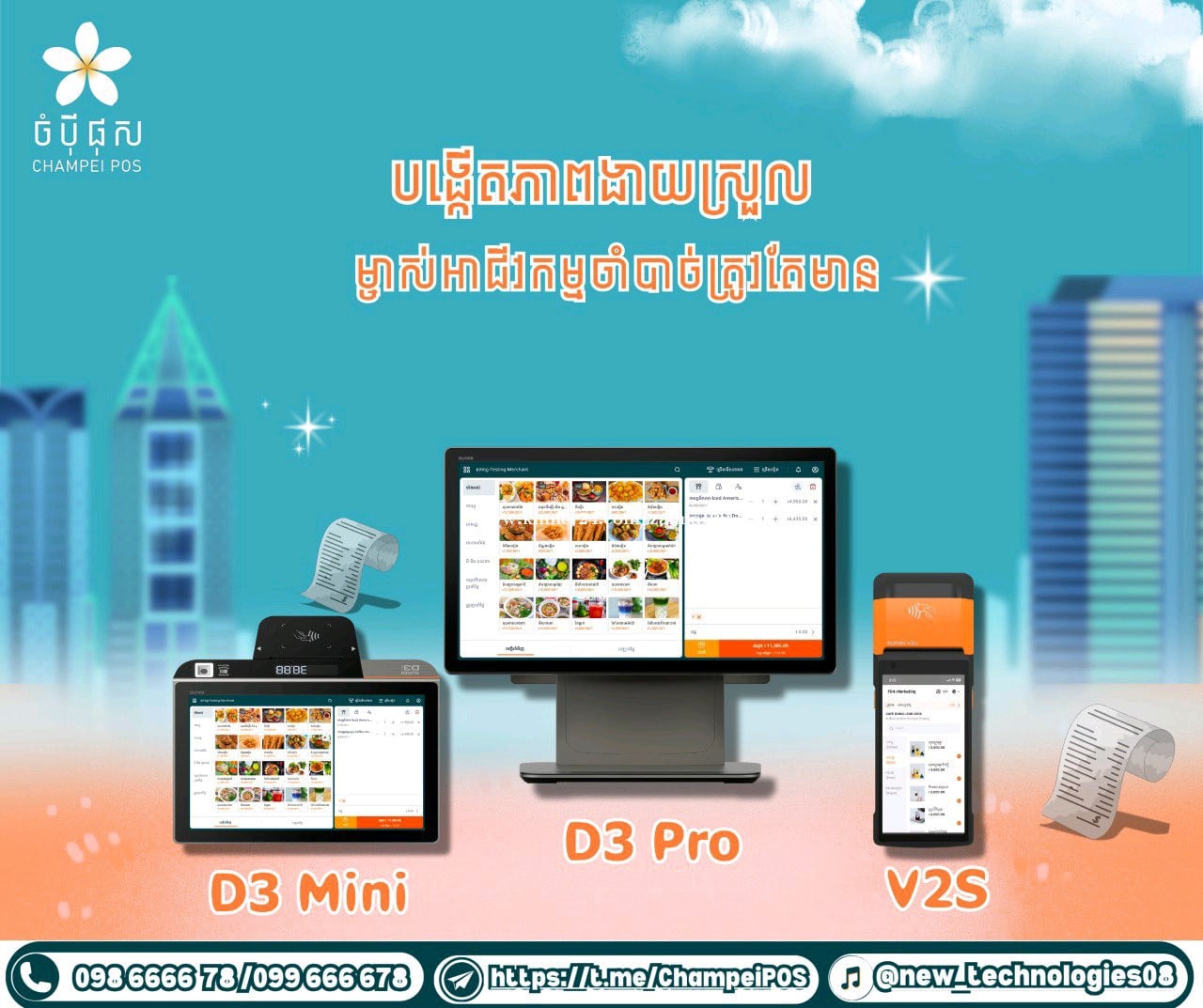 ប្រព័ន្ធគ្រប់គ្រងអាជីវកម្ម ចំបុី ផុស គឺជាជម្រើសដ៏ល្អបំផុតសម្រាប់អ្នកចង់ចាប់ផ្ដើមអាជីវកម្មមានប្រព័ន្ធគ្រប់គ្រងអាជីវកម្មចំប៉ី ផុស អ្នកនឹងទទួលបានអត្ថប្រយោជន៍ជាច្រើន៖ ✅ ទទួលបានការប្រើប្រាស់ម៉ាស៊ីន សមស្របទៅតាមប្រភេទអាជីវកម្ម ✅ ផ្តល់ការប្រើប្រាស់ពេញ ១ឆ្នាំដោយឥតគិតថ្លៃ ✅ ជួយសន្សំសំចៃ ក្នុងការចំណាយ ✅ បង្កើនអតិថិជនជូនលោកអ្នក ✅ គ្រប់គ្រងចំណូល-ចំណាយច្បាស់លាស់ ✅ ពិនិត្យរបាយការណ៍បានភ្លាមៗ ចំប៉ី ផុសមានមុខងារដ៏សម្បូរបែប និងទំនើបសម្រាប់ម្ចាស់អាជីវកម្មគ្រប់ប្រភេទ ។ ទំនាក់ទំនងមកកាន់យើងខ្ញុំឥឡូវនេះ ដើម្បីទទួលបានព័ត៌មានលម្អិត៖ ️ 098623xxxClick To Call / 099666xxxClick To Call / 0716666xxxClick To Call Telegram: https://t.me/champeipos2025 YouTube: https://www.youtube.com/channel/UCB_NnPwX5MrdiCusWrnsX1Q Tiktok: https://www.tiktok.com/@new_technologies08?_t=ZS-8ubq4gzD23U&_r=1