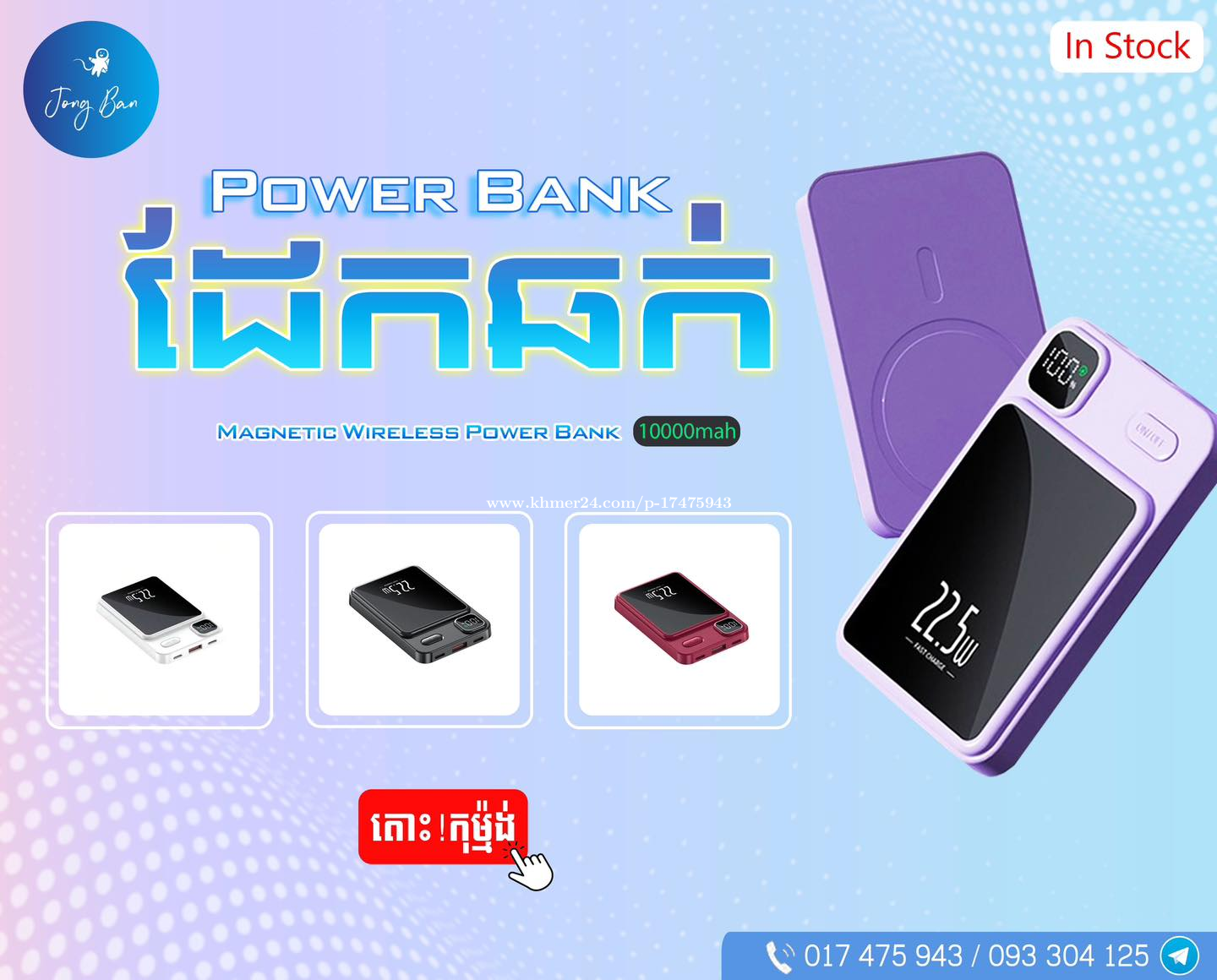 ឡូយមែន..! 🤩Magnetic Wireless Power Bank 10000mh ជាប្រភេទដុំសាកថ្មដែលមិនចាំបាច់ត្រូវការខ្សែរ ងាយស្រួលដាក់តាមខ្លួន! អាចឆក់ជាប់ជាមួយទូរសព្ទ័ដោយមិនចាំបាច់ដក់ case ចេញ! យាយមែនមិនដែលស្រឡាញ់ Power Bank ណាដូច Power Bank នេះទេ! មានពណ៍ស ពណ៍ខ្មៅ ពណ៍ស្វាយ និងក្រហម😍 អាចកុម្ម៉ង់បានណា៎… មានក្នុងស្តុកស្រាប់ 🔋