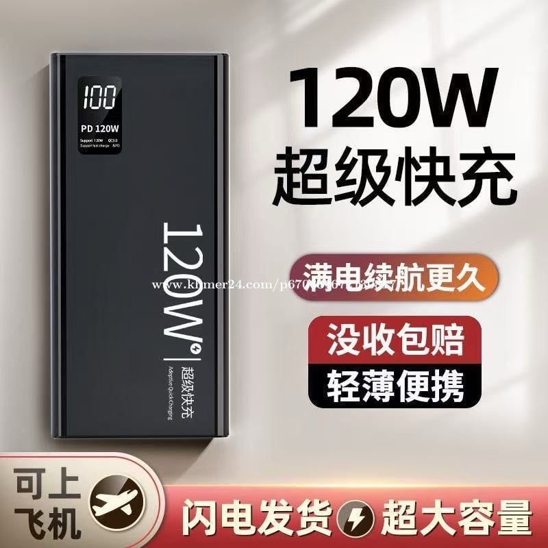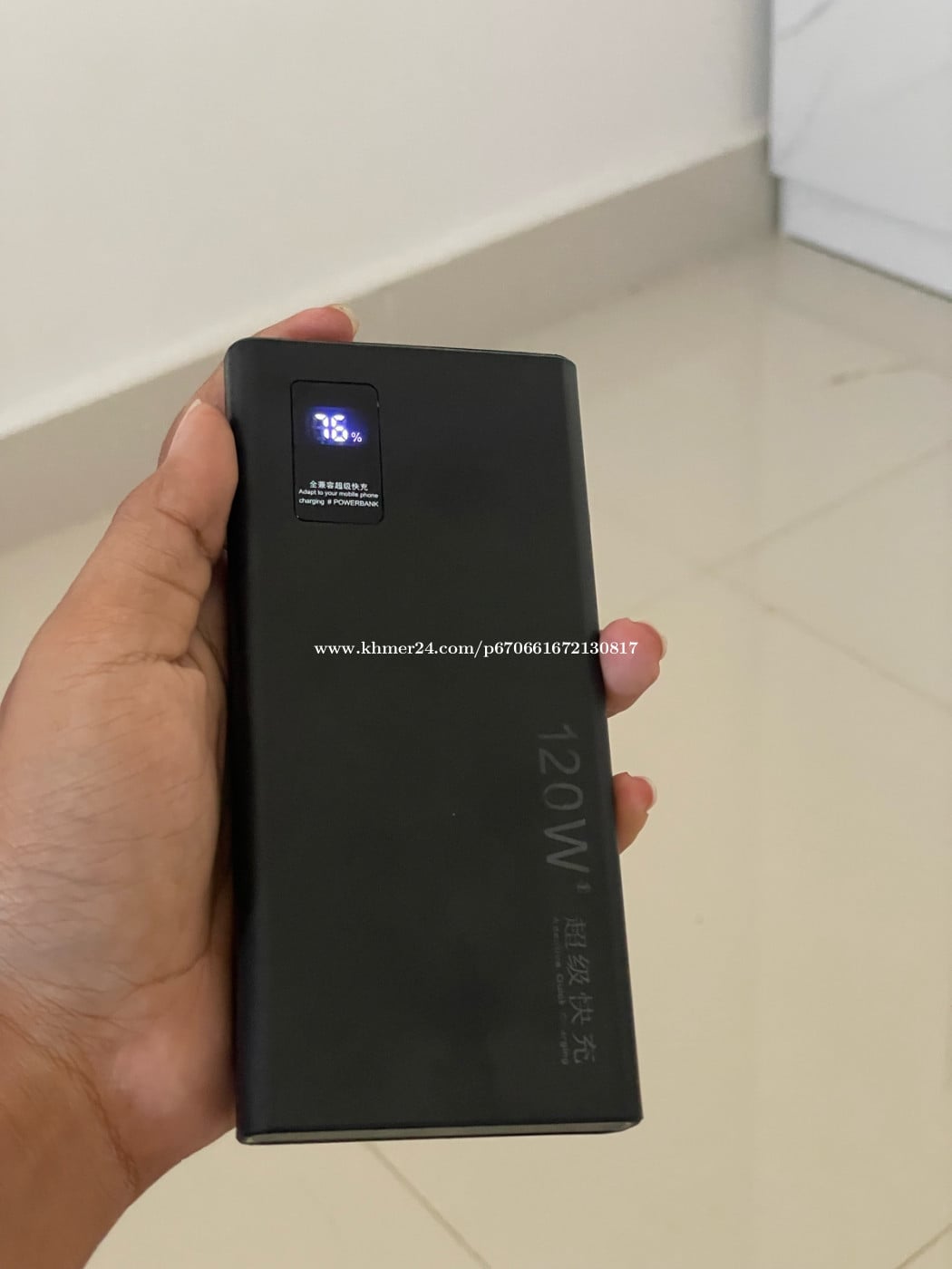 Power bank 120W ទំហំថ្ម 20000mah ទំហំល្មមស្រួយដាក់តាមខ្លួនហើយសាកថ្មលឿនតម្លៃសមរម្យត្រឹមតែ 10$