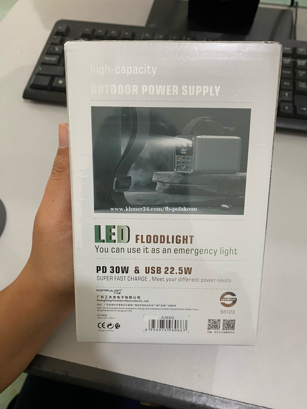 Power Bank Model: A28SQ ទំហំថ្ម : 60000mah រុន្ធសាកចេញ : 7 កម្លាំងសាក : 30W Type C in-out អាចប្រើជាពិលបាន Color: Black ថ្មី