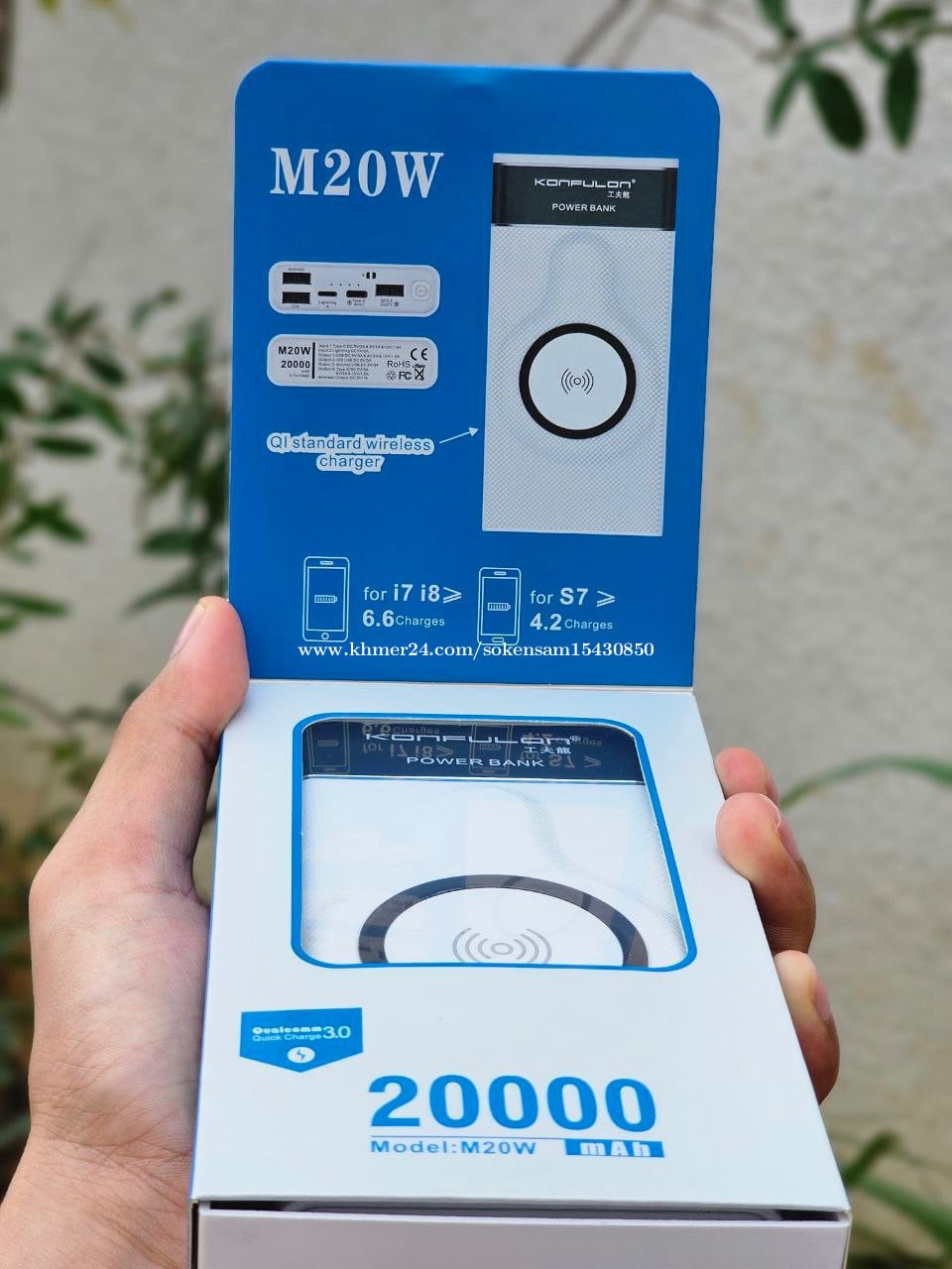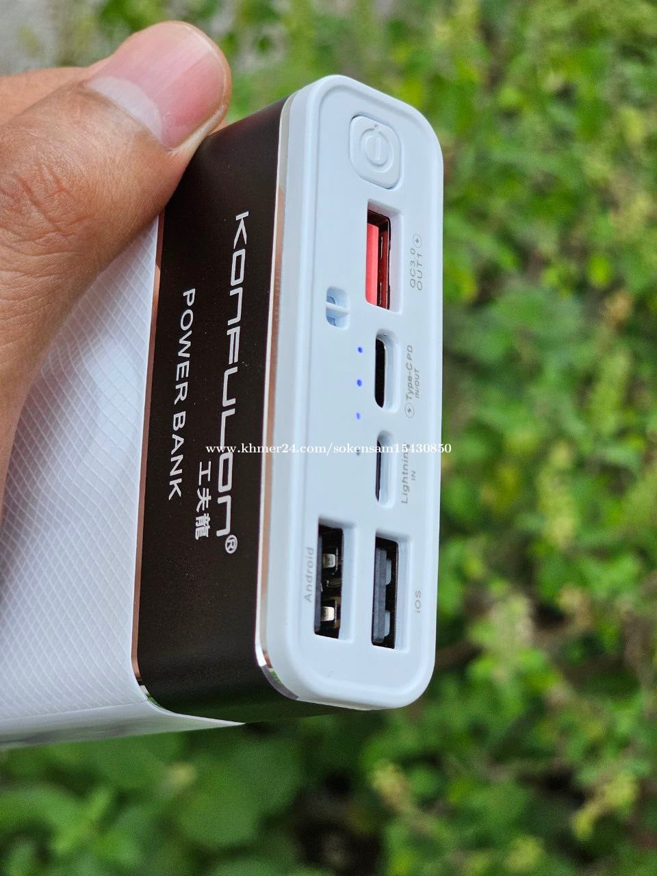 New Update 22.5W Power bank original Konfulon M20W 20000mAh អាចសាកទូរស័ព្ទបាន 5 ក្នុងពេលតែមួយ ដែលមានរន្ឋ USB3 1Type-C PD In/ Out 22.5W & Wireless 15W មានរន្ឋសាកចូល2 គឺ Lightning ( Iphone)និង Type-C PD 📲 0963010xxxClick To Call